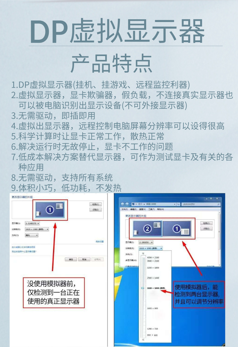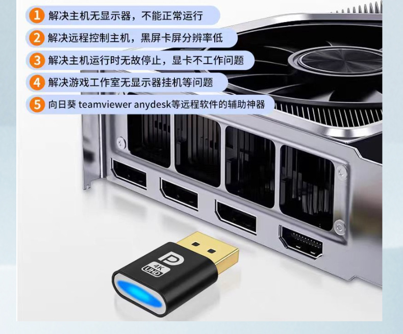 DP 가상 디스플레이 원격 온 후크 3060 그래픽 로드 컨버터 지정 해상도 EDID 잠금 화면 보물