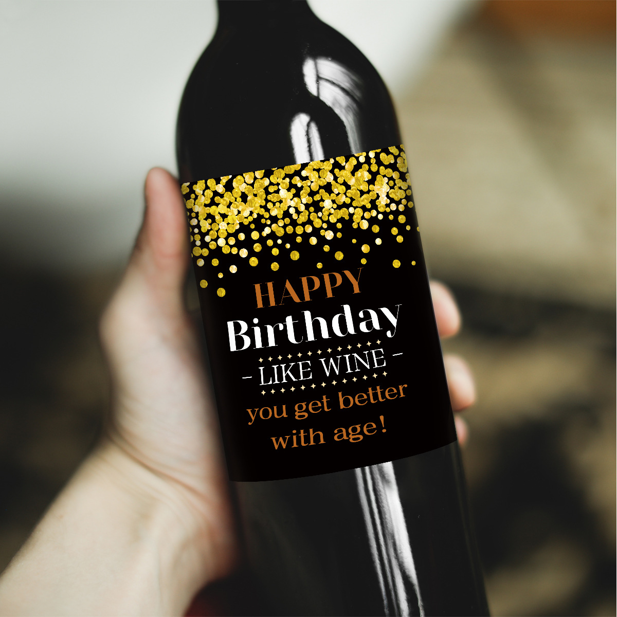 4개의 국경 간 인기 판매 생일 와인 병 라벨, 휴일 이벤트 와인 병 스티커, 파티 분위기 장식 소품스토어 가기