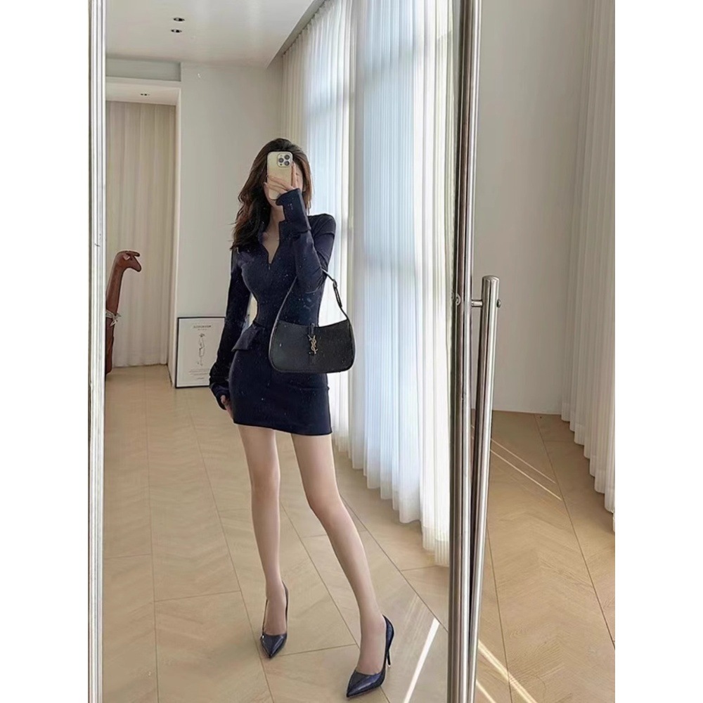 纯欲风深V连衣裙女春季高级感小个子收腰修身性感辣妹包臀短裙子스토어 가기