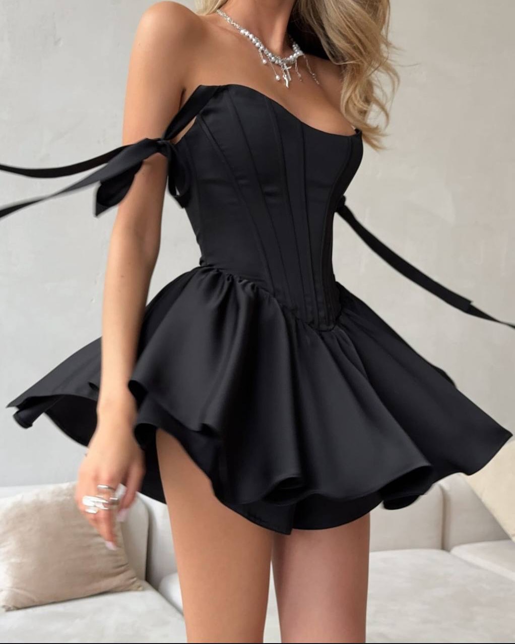 2025 새로운 유럽 크기 여름 국경 발레 스타일 섹시 백리스 어본 타이트 허리 스트랩 새틴 원피스