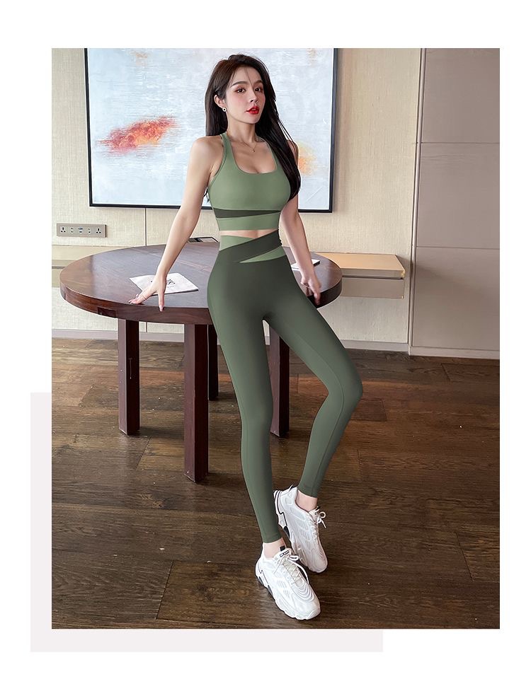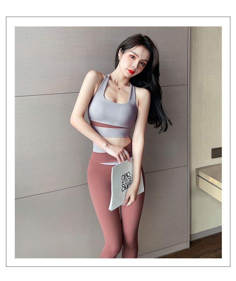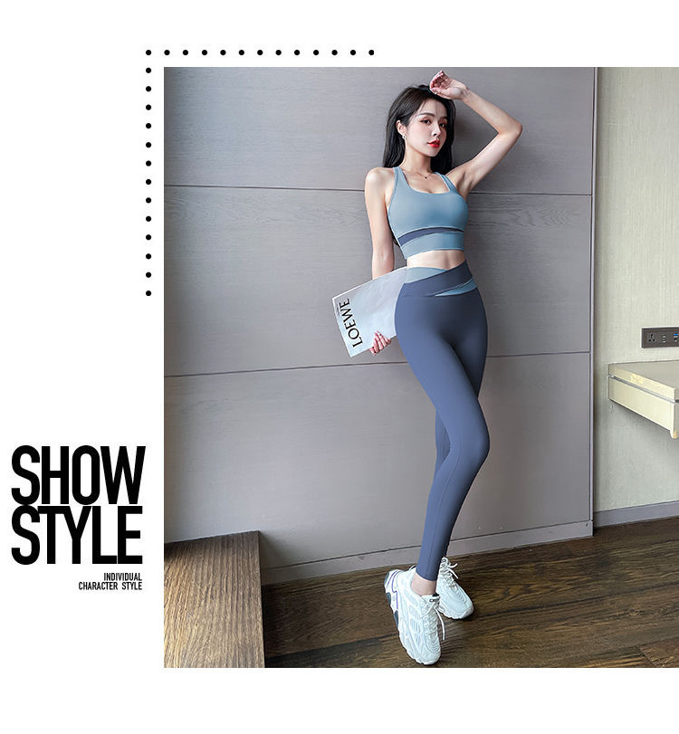여성용 요가복 세트, 하이웨이스트 타이트 힙업 피트니스 팬츠, 배색 러닝 충격방지 속옷, 스포츠 여성용 바디쉐이핑 아이스감스토어 가기