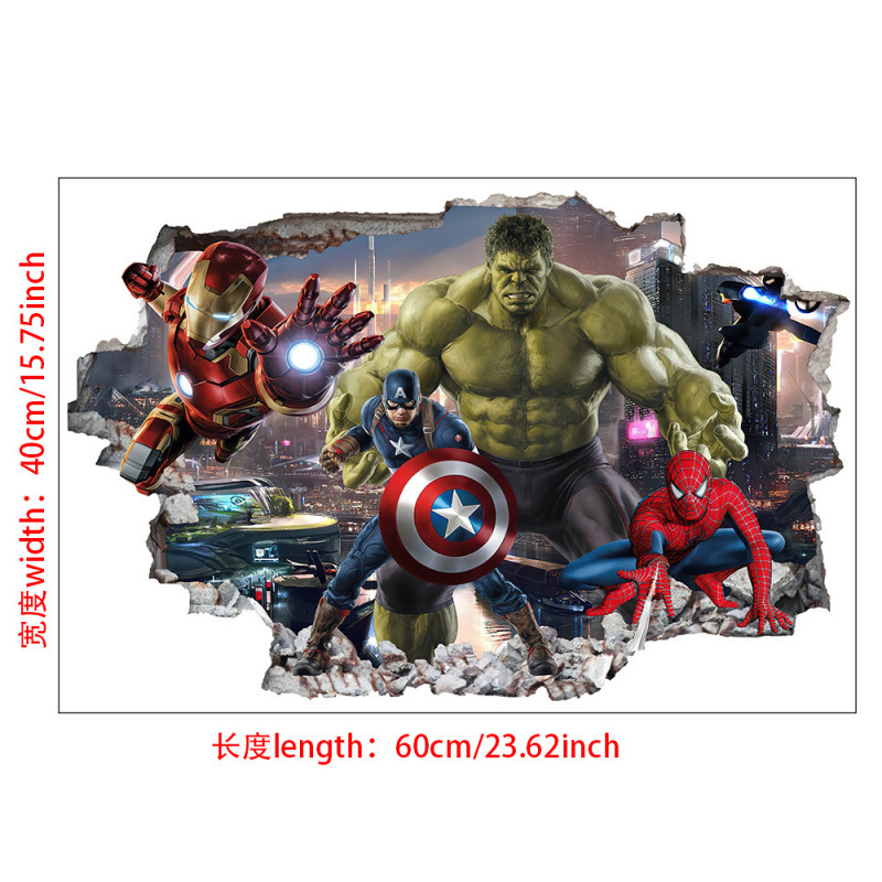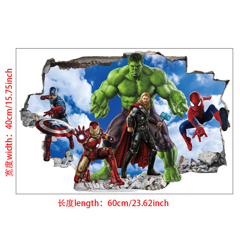 벽을 통해 국경 간 대외 무역 마블 스티커 3 차원 어벤져 거실 침실 장식 벽 스티커 도매스토어 가기
