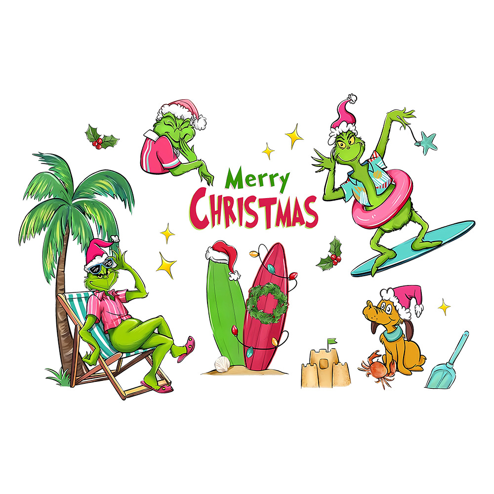 그린 치 만화 필름 벽 스티커 크리스마스 장식 벽지 녹색 머리 괴물 크리스마스 트리 창 스티커 pvc 크로스 국경 스티커스토어 가기