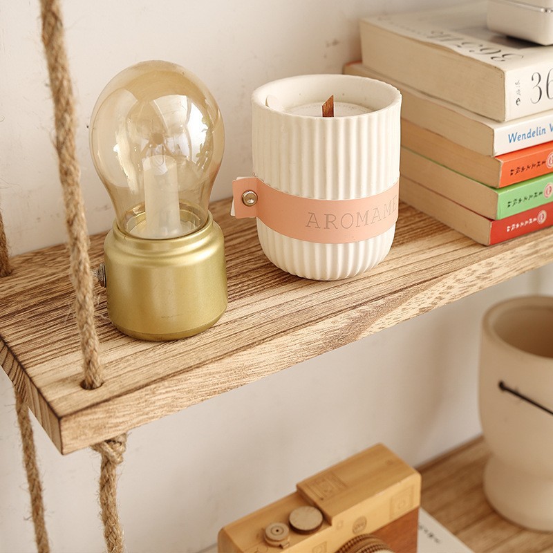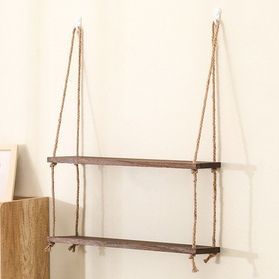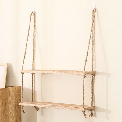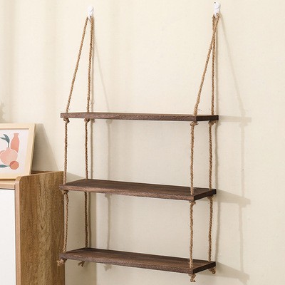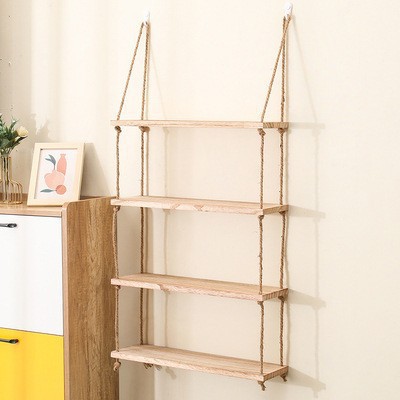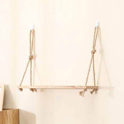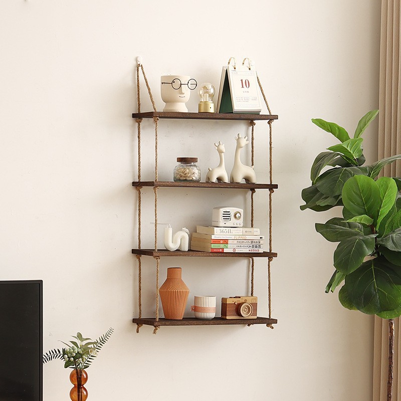 벽걸이 선반, 구멍이 없는 대마 로프 원목 책장, 일자형 칸막이, 다층 보드, 거실 벽걸이 장식 선반