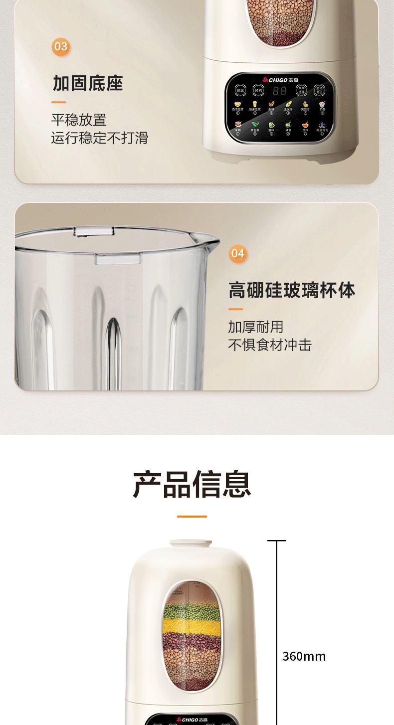 Chigo 음성 벽 파괴 기계 1.75; 대용량 완전 자동 가열 요리 기계 다기능 두유 기계 주서기스토어 가기