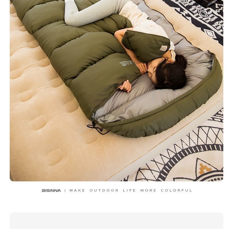 [가로형 디자인] 성인용 베이산랑 그래핀 침낭, 겨울철 두꺼워진 야외 캠핑 싱글