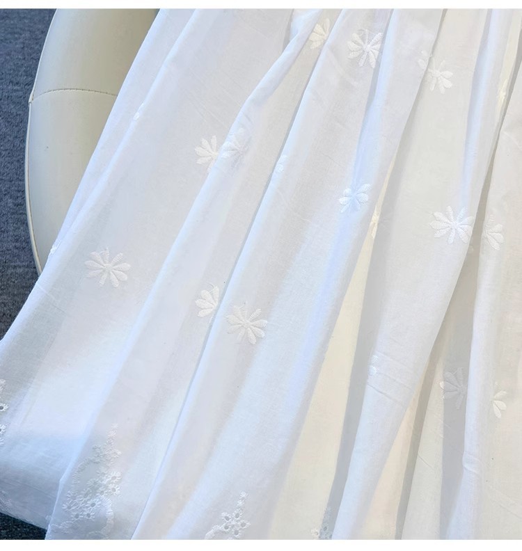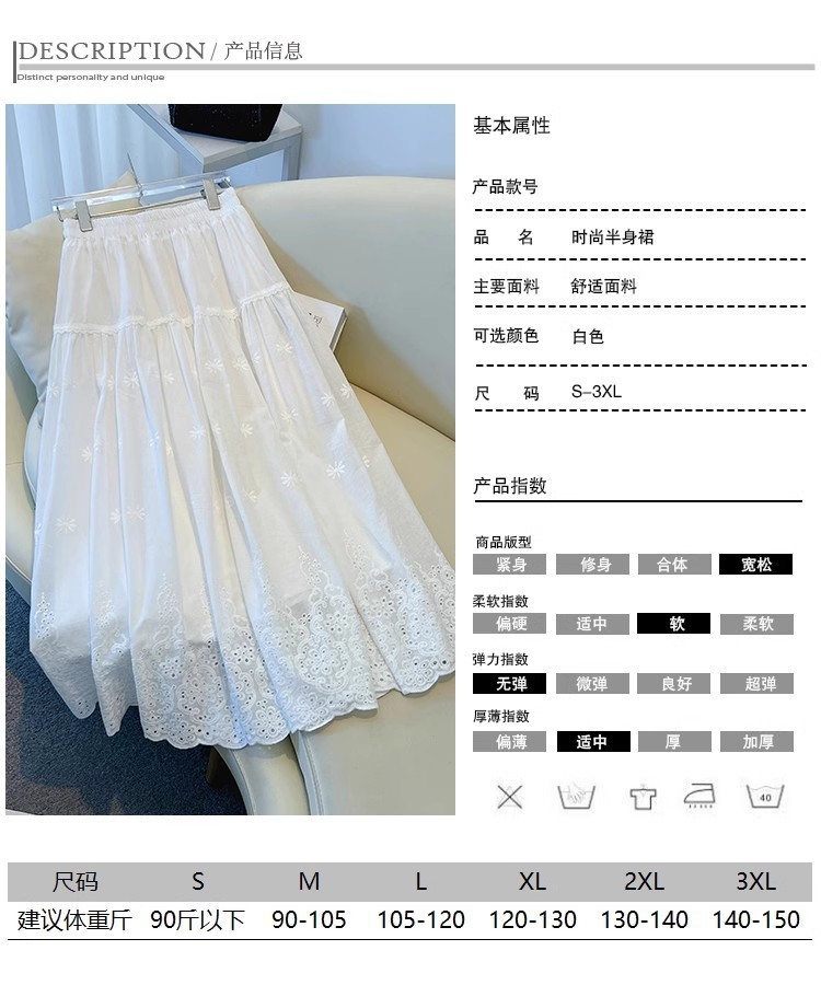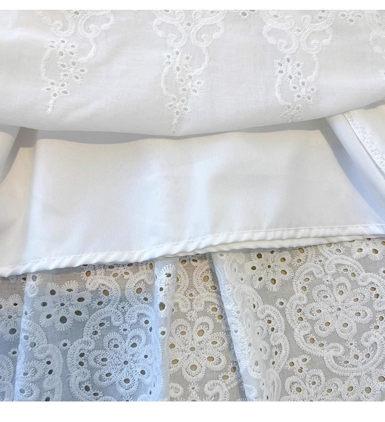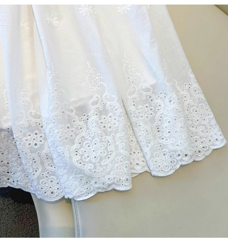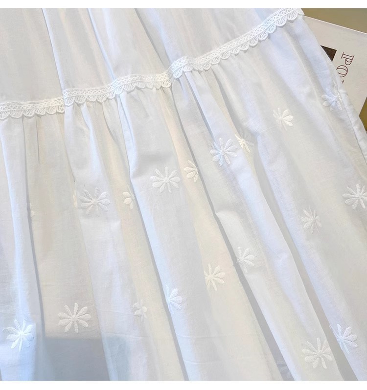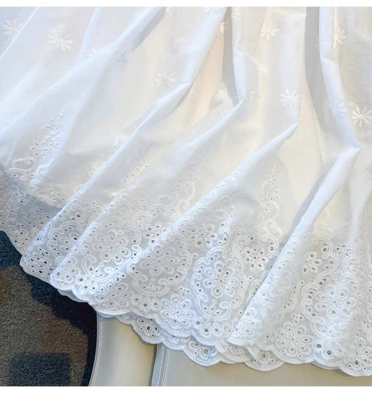 중대형 어린이용 흰색 스커트, 여아용 패셔너블한 롱 스커트, 봄 여름 중간 길이의 달콤한 중공 자수 레이스 스커트