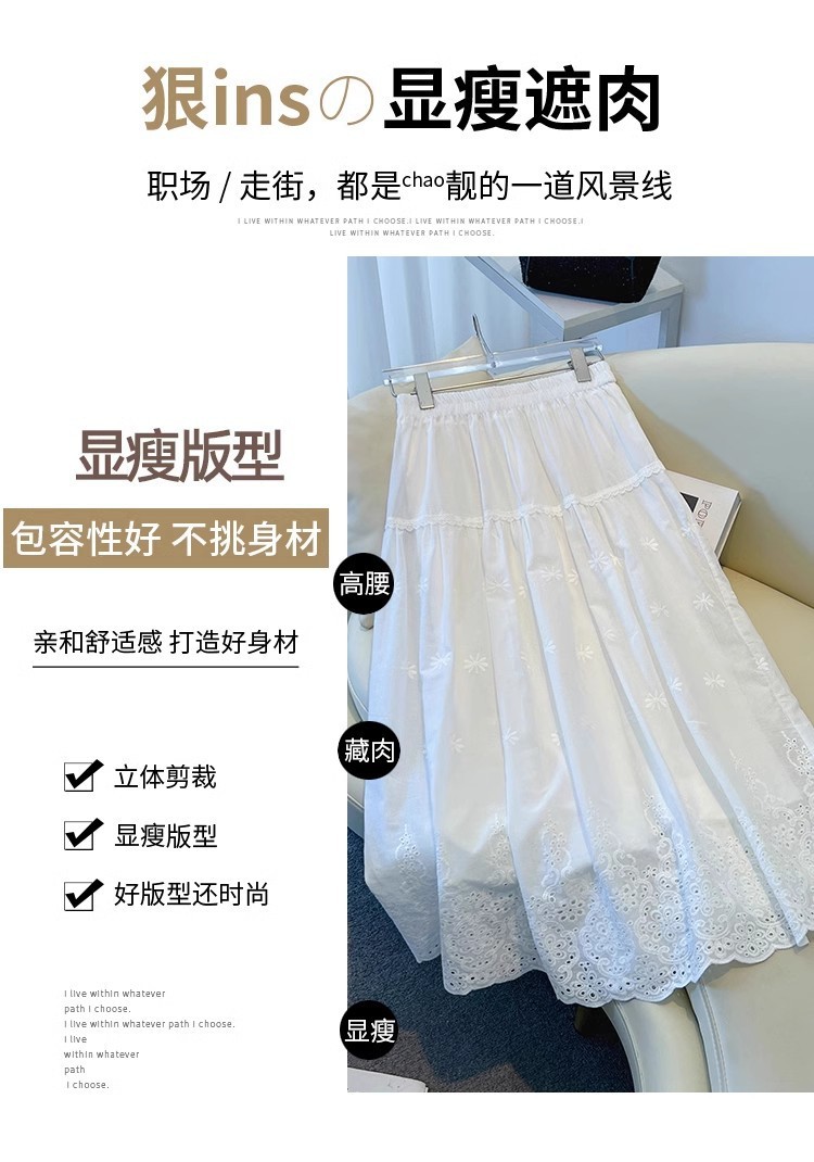 중대형 어린이용 흰색 스커트, 여아용 패셔너블한 롱 스커트, 봄 여름 중간 길이의 달콤한 중공 자수 레이스 스커트스토어 가기