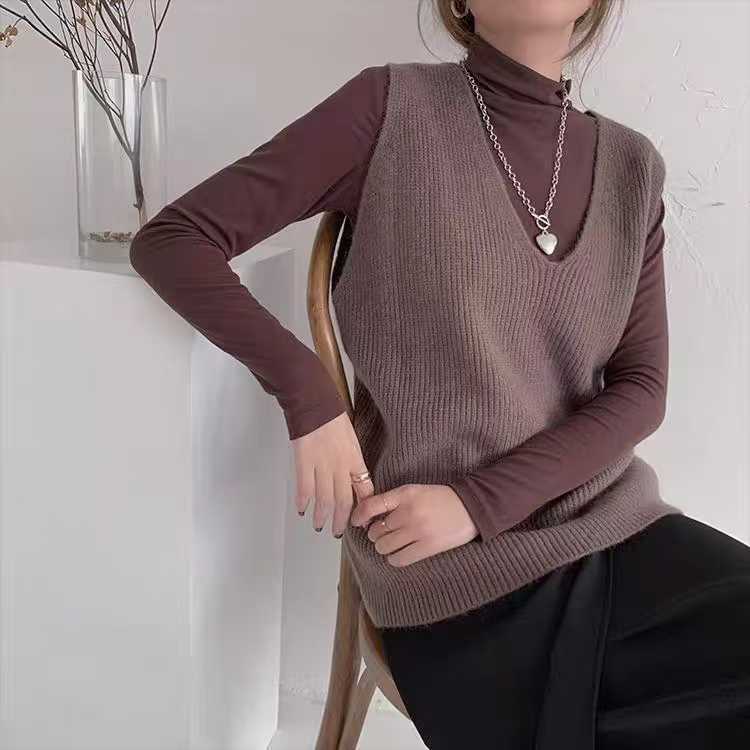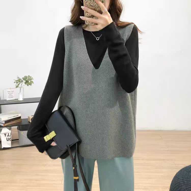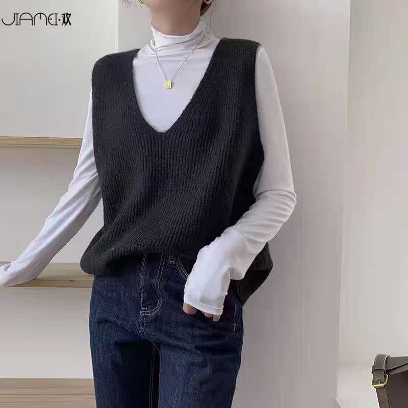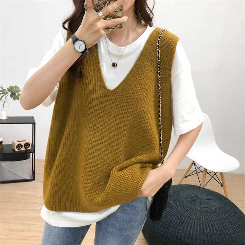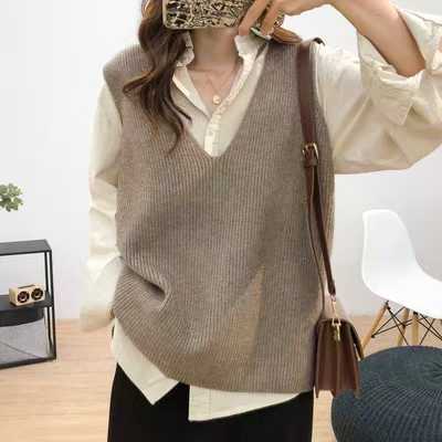 여성을위한 양모 대형 버전 니트 조끼 2025 새로운 솔리드 컬러 느슨한 v 넥 캐주얼 통근 니트 탑스토어 가기
