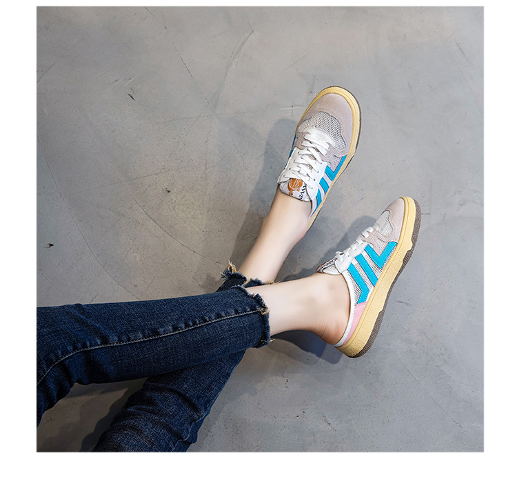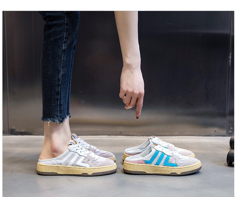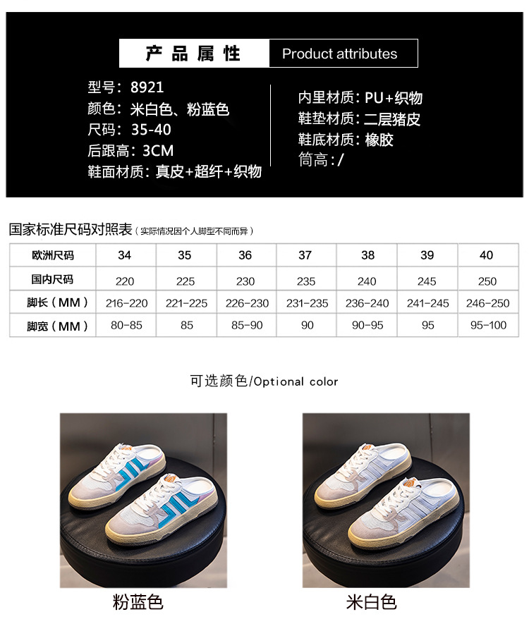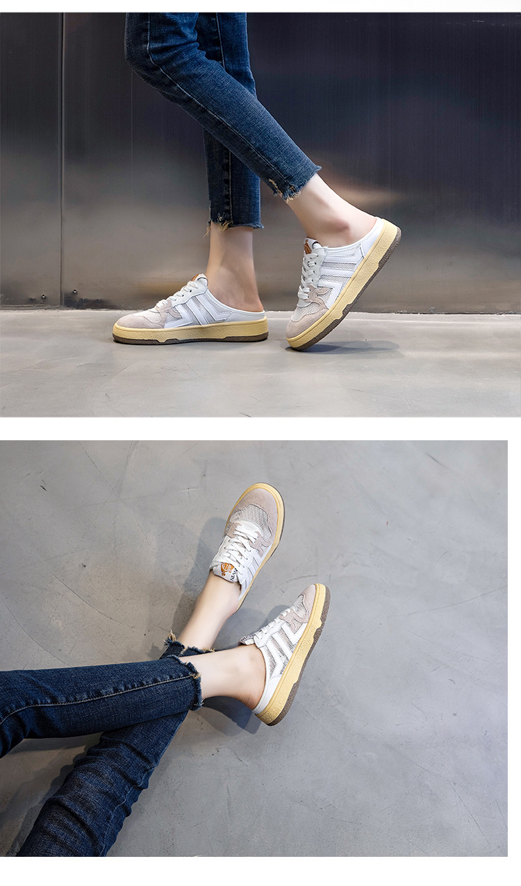 정품 가죽 하프 슈즈 여성 2025 년 새 여름 여성 캐주얼 슈즈 올매치 아우터웨어 플랫 슬리퍼 여성용 신발스토어 가기