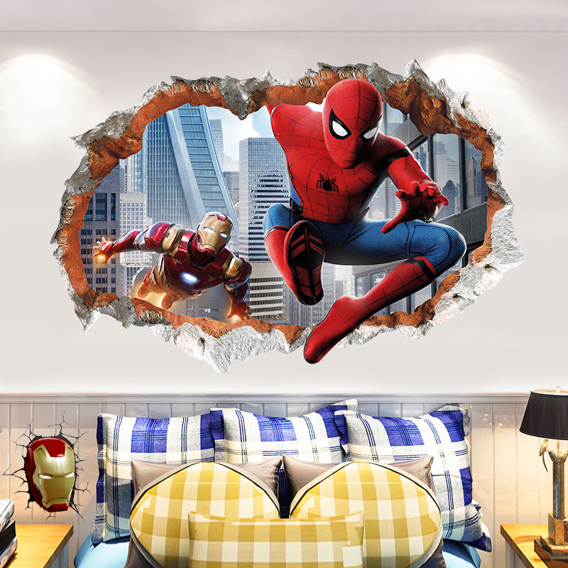 재미있는 만화 3 차원 벽을 통해 스파이더 맨 방수 벽 스티커 거실 장식 배경 벽 스티커 이동식