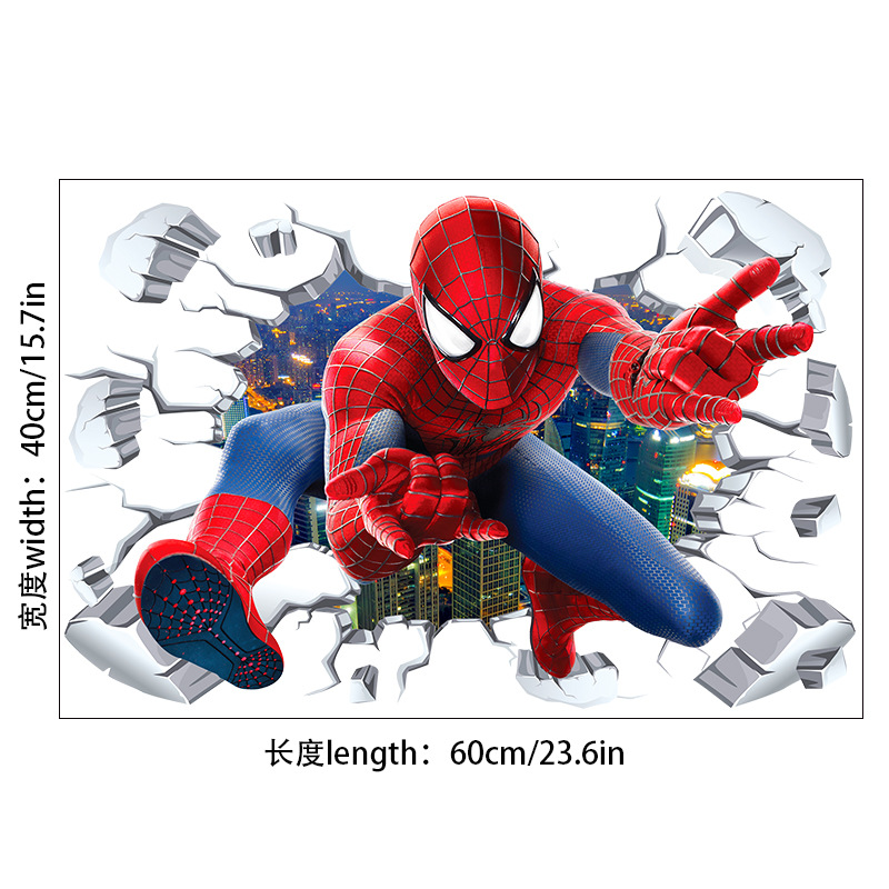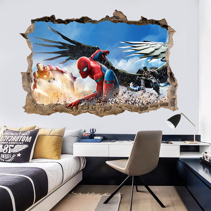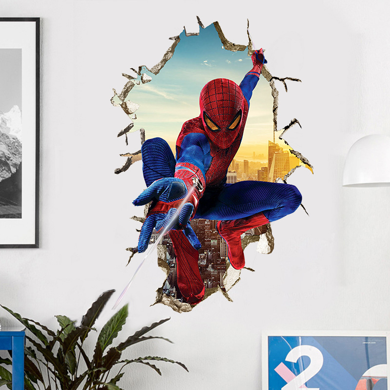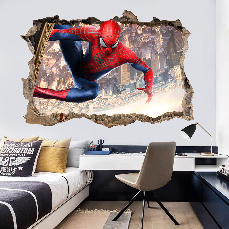 재미있는 만화 3 차원 벽을 통해 스파이더 맨 방수 벽 스티커 거실 장식 배경 벽 스티커 이동식스토어 가기