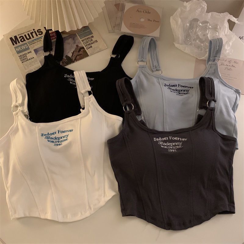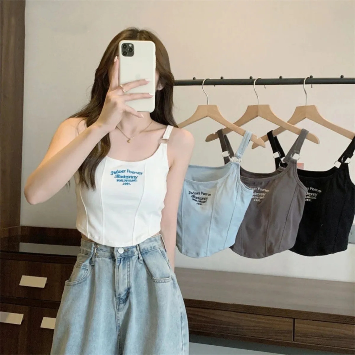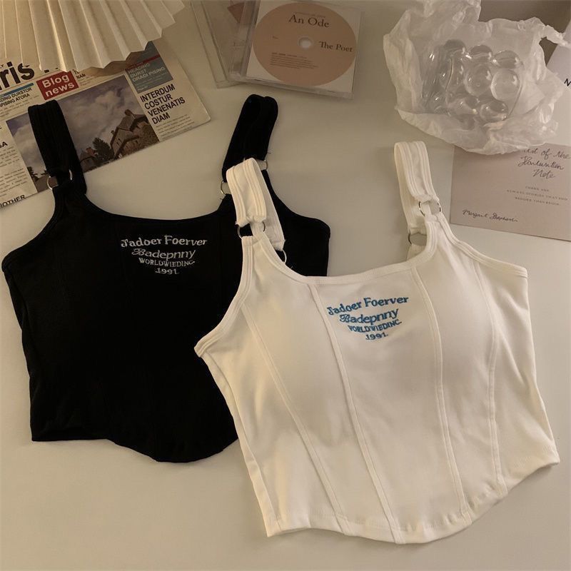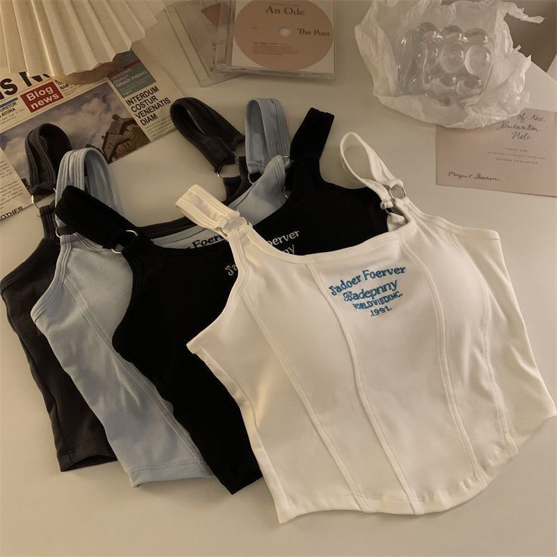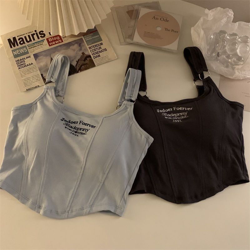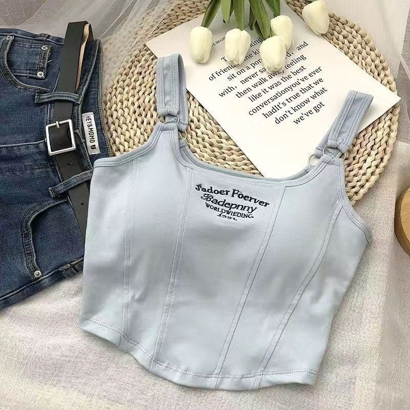 새로운 스타일의 핫걸 홍콩 스타일 서스펜더 슬림핏 다용도 순수한 욕망 슬리밍 민소매 탑 여성용 노출 방지 가슴 랩 조끼스토어 가기