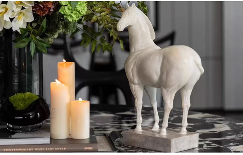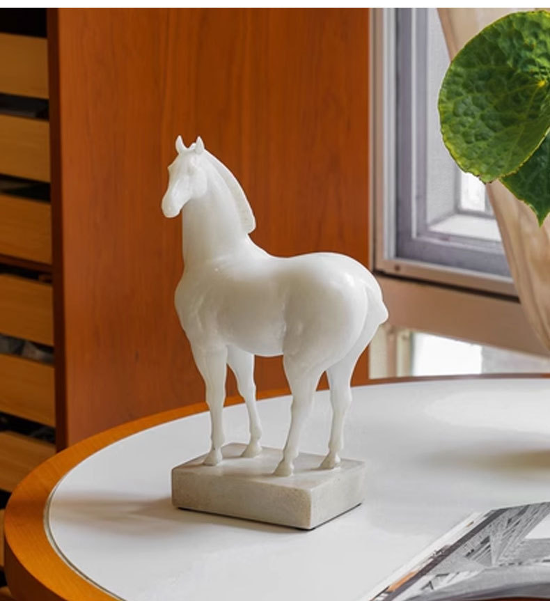 새로운 중국 스타일 복고풍 흰 말 조각 장식품 홈 액세서리 흰 말 거실 호텔 TV 캐비닛 장식 선물