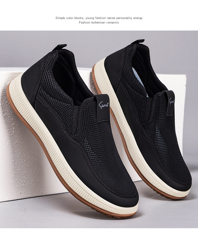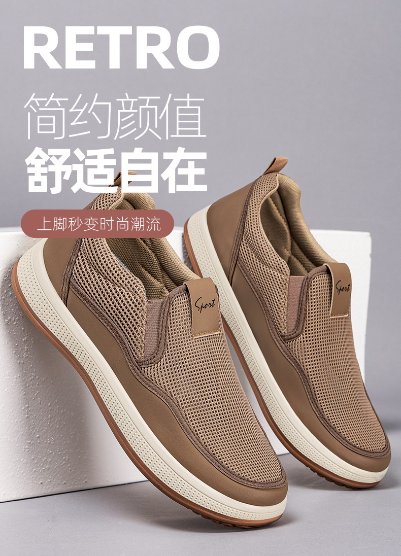 올드 베이징 슈즈 남성 캐주얼 통기성 메쉬 슈즈 남성 슬립온 슬립온 편안한 부드러운 밑창 경량 아빠 신발