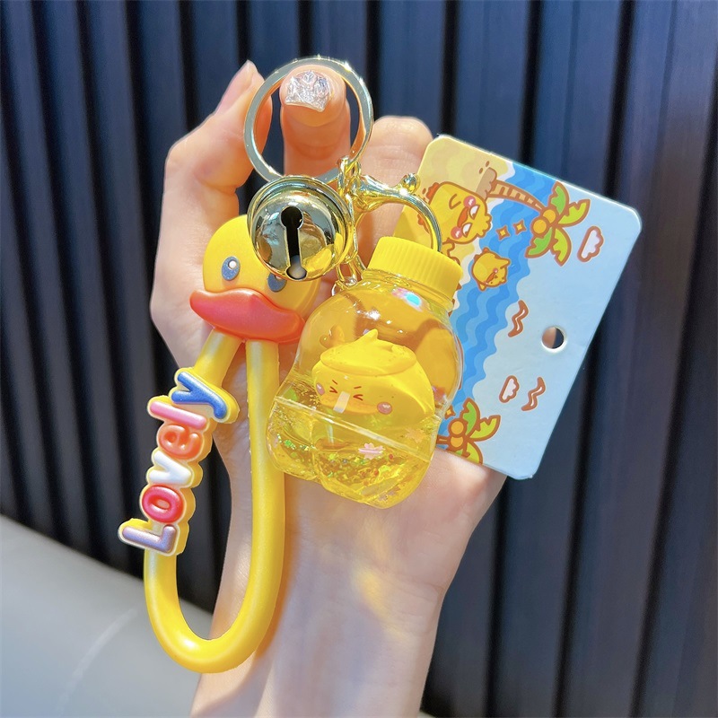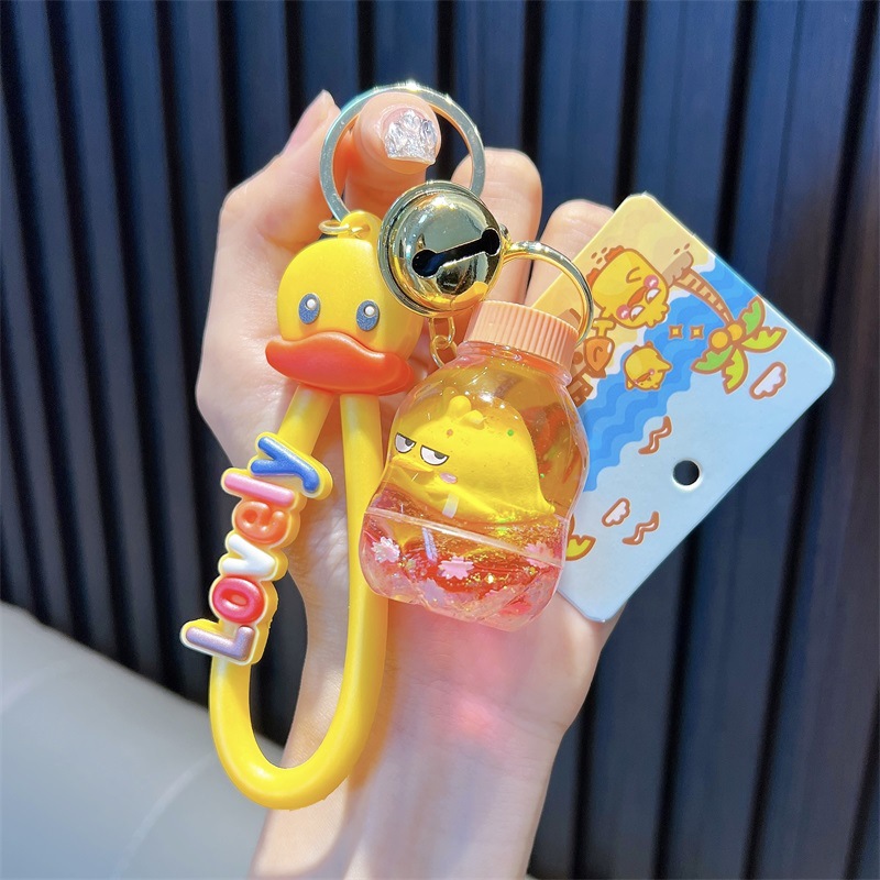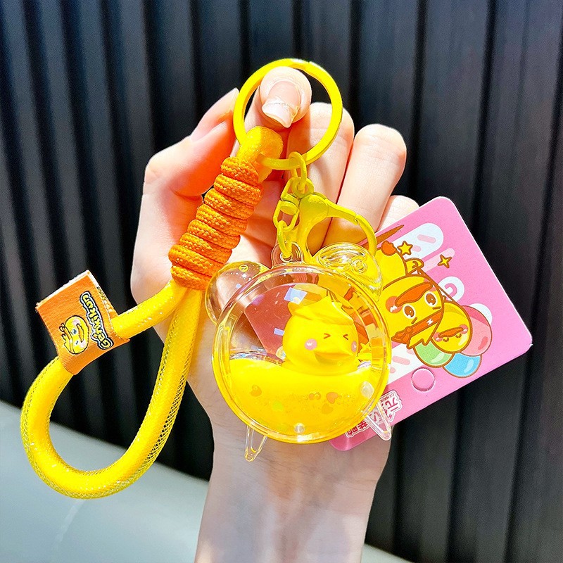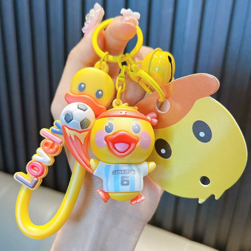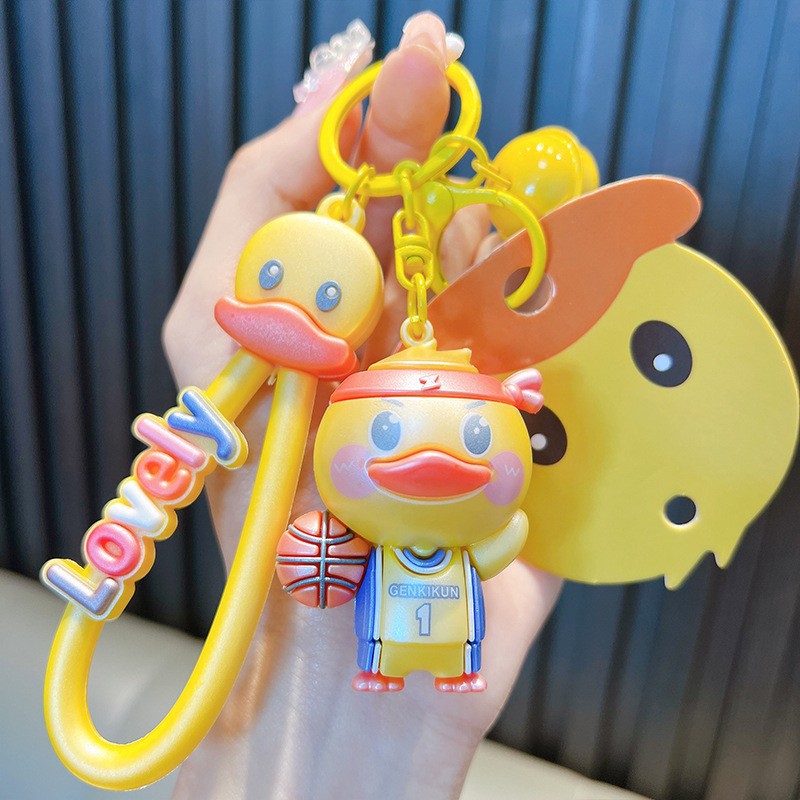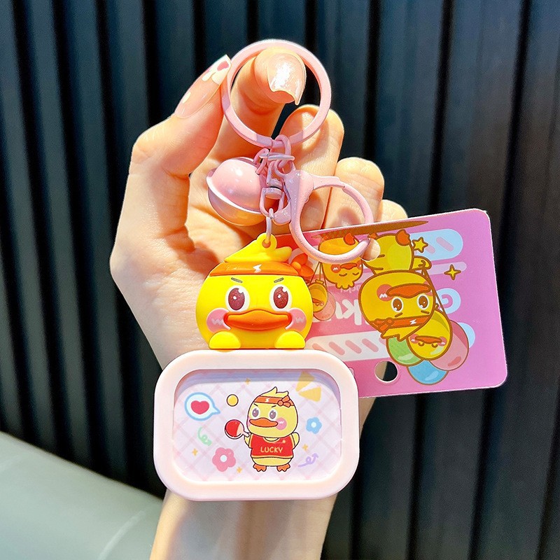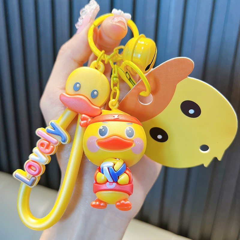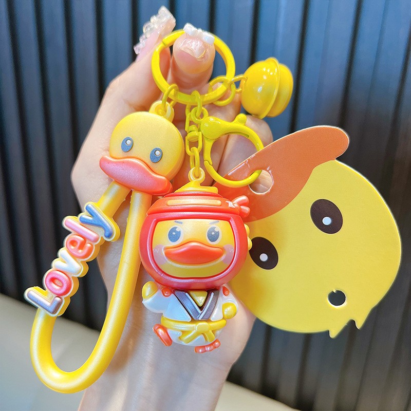 정품 공인 작은 노란색 오리 열쇠 고리 학생 가방 펜던트 장난감 자동차 열쇠 고리 작은 선물 도매