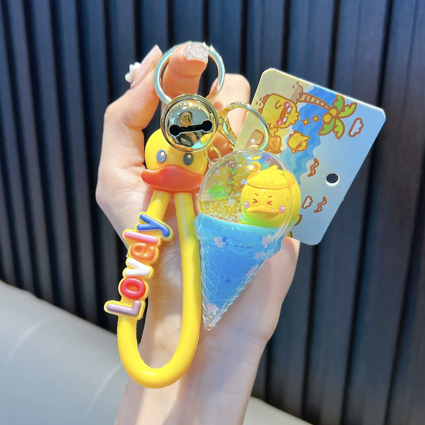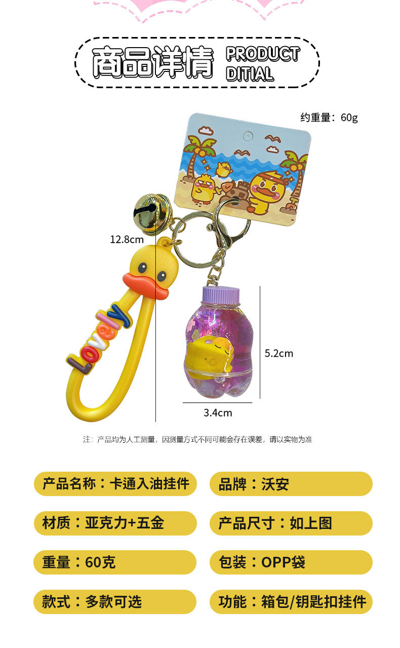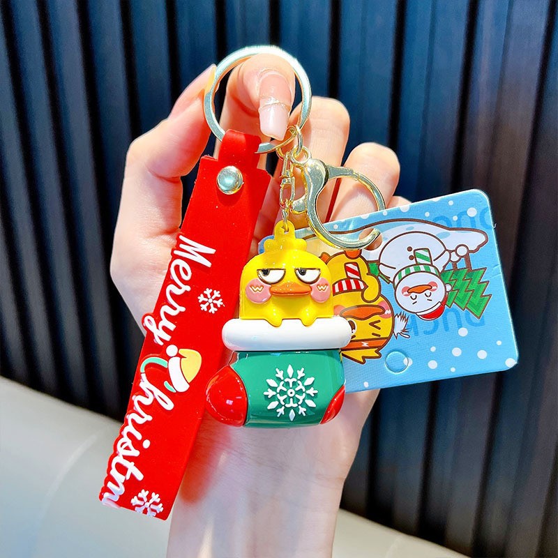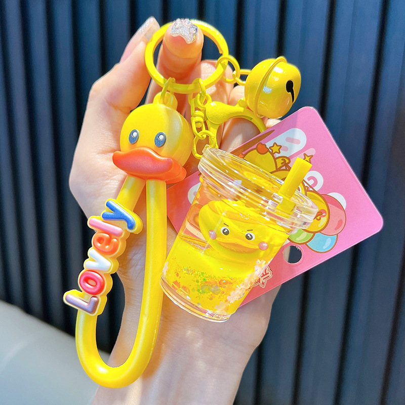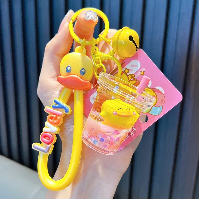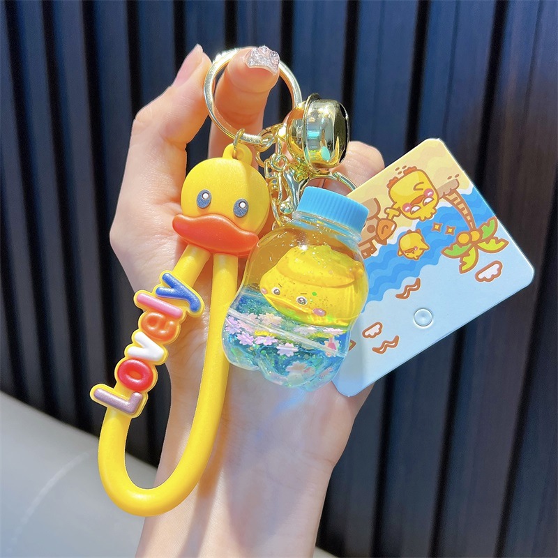 정품 공인 작은 노란색 오리 열쇠 고리 학생 가방 펜던트 장난감 자동차 열쇠 고리 작은 선물 도매