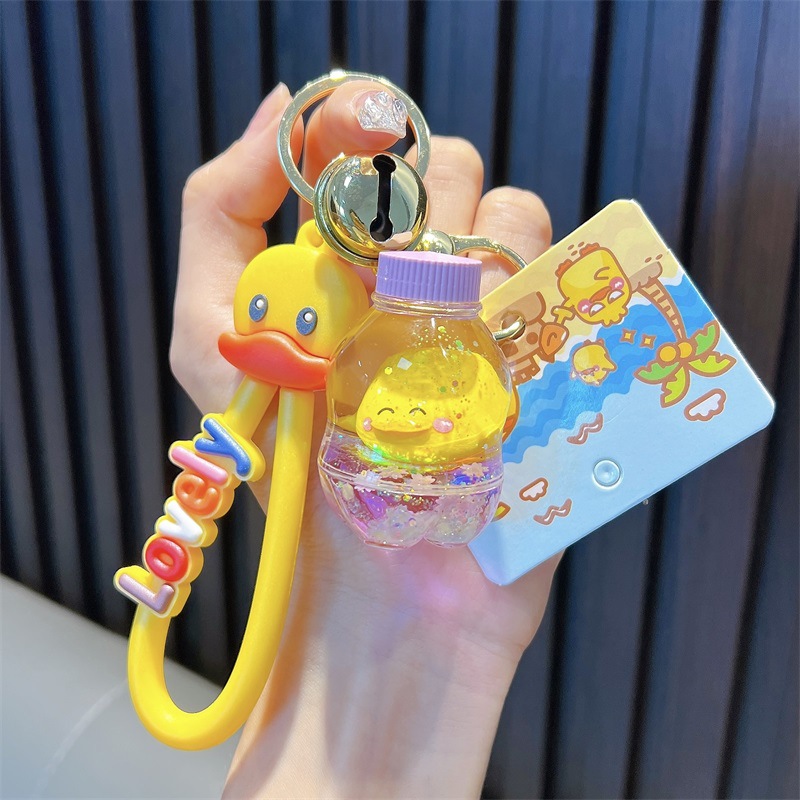 정품 공인 작은 노란색 오리 열쇠 고리 학생 가방 펜던트 장난감 자동차 열쇠 고리 작은 선물 도매스토어 가기