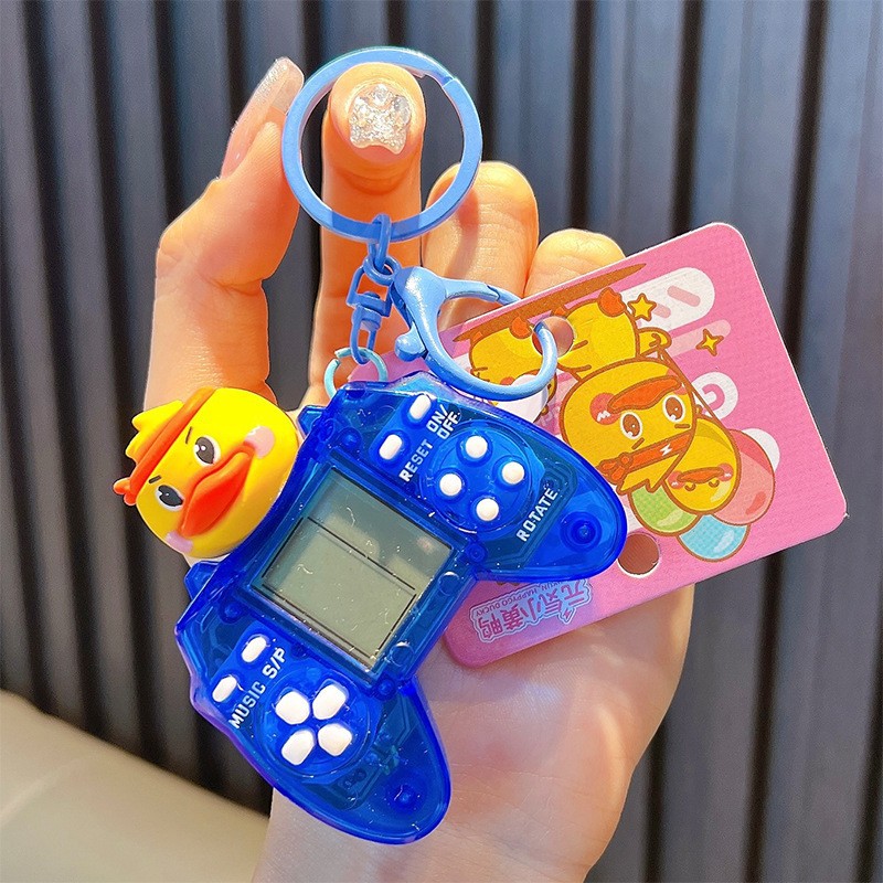 • 작은 노란 오리 투명 핸들 게임 콘솔-블루