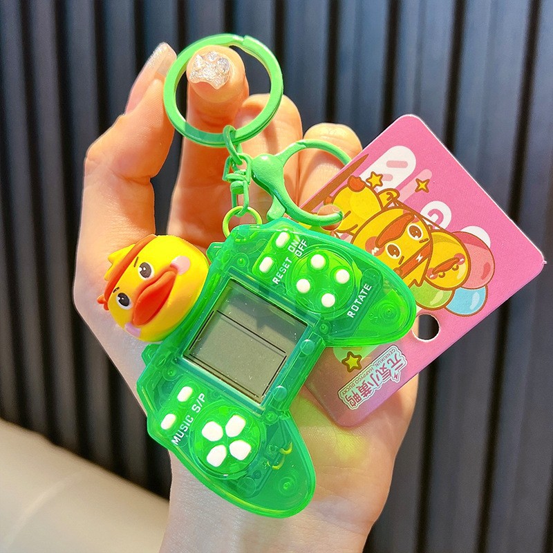 • 작은 노란 오리 투명 핸들 게임 콘솔-녹색