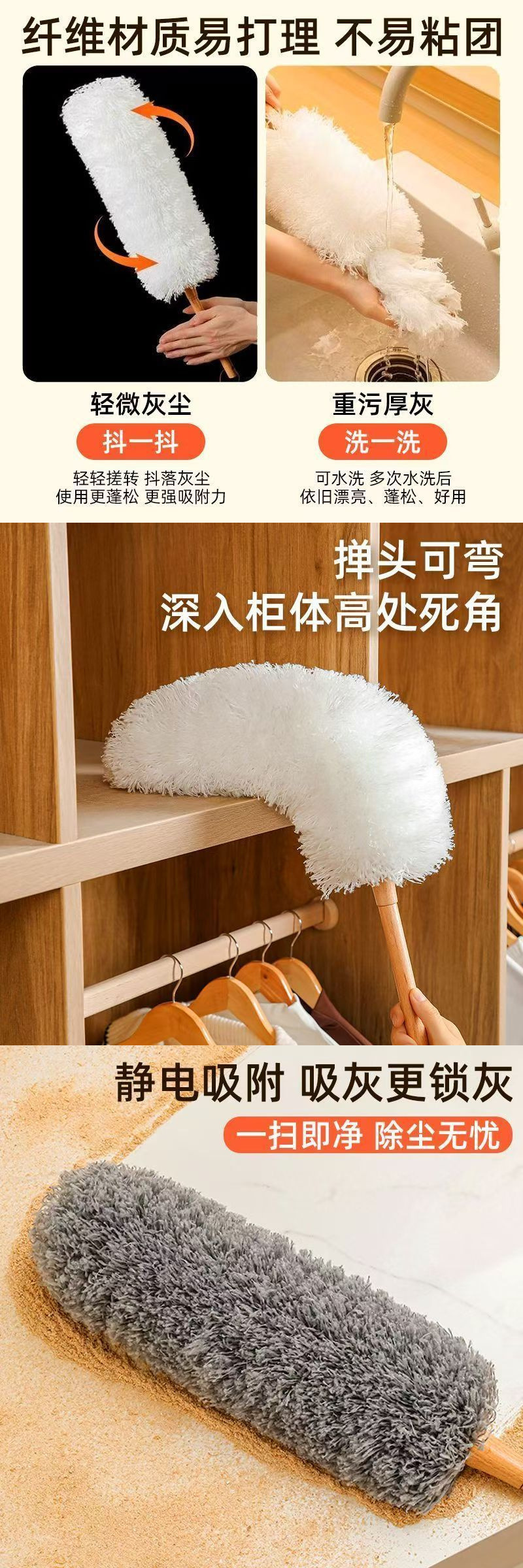 먼지 제거용 깃털 먼지떨이, 가정용 개폐식 보푸라기 없는 먼지 제거 도구, 자동차 매장용, 정전기 먼지 제거용 먼지떨이스토어 가기