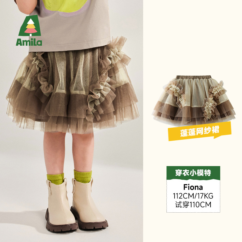 여자 푹신한 메쉬 스커트 Amila 아동복 2025 여름 새로운 어린이 다목적 솔리드 컬러 공주 스커트