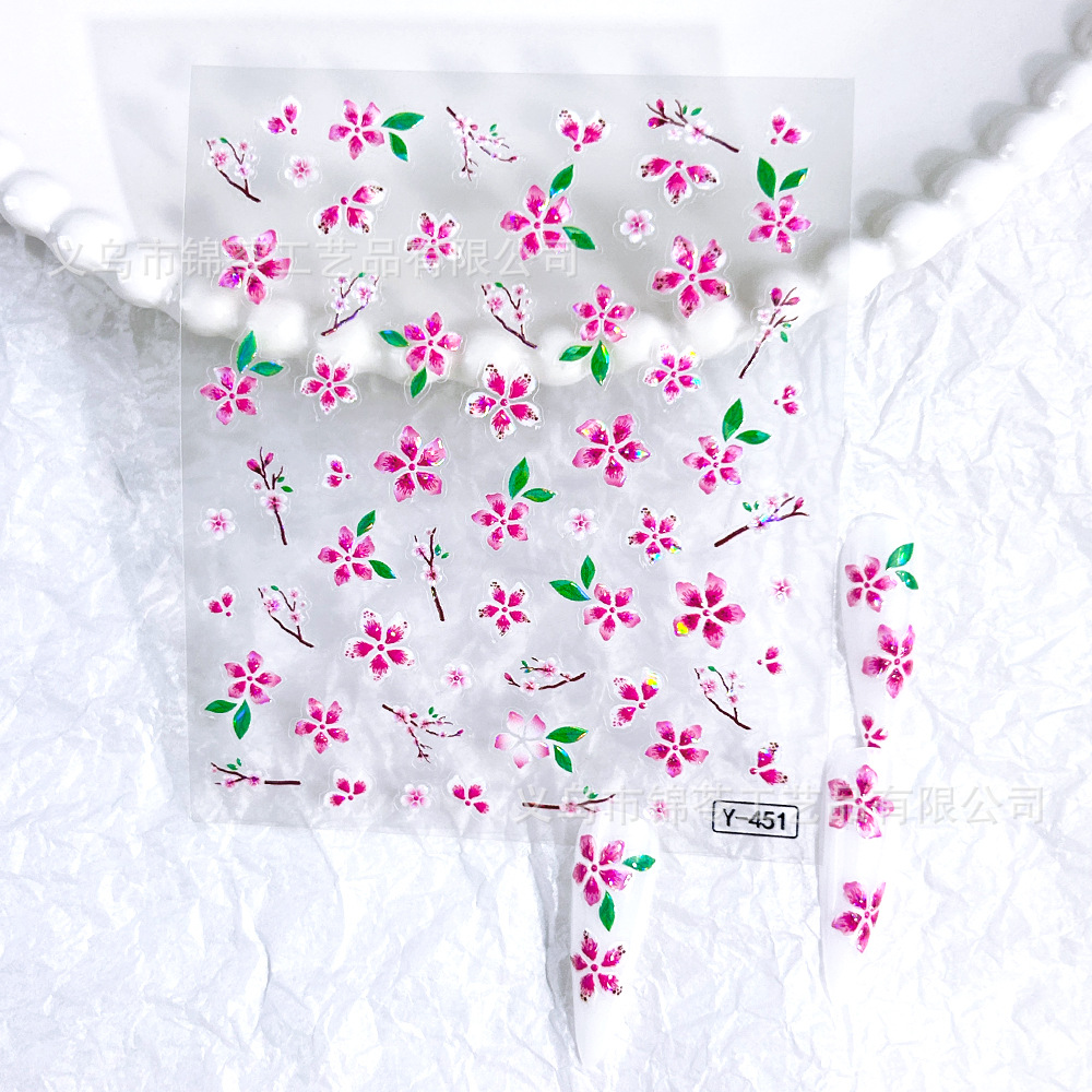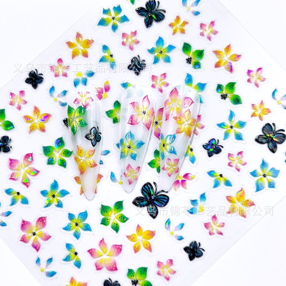 그라디언트 얼룩진 프랑스 매니큐어 스티커 5d 양각 유리 나비 꽃 낙서 네일 스티커 입체 접착제