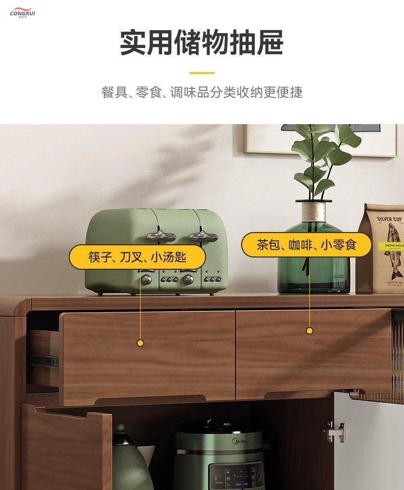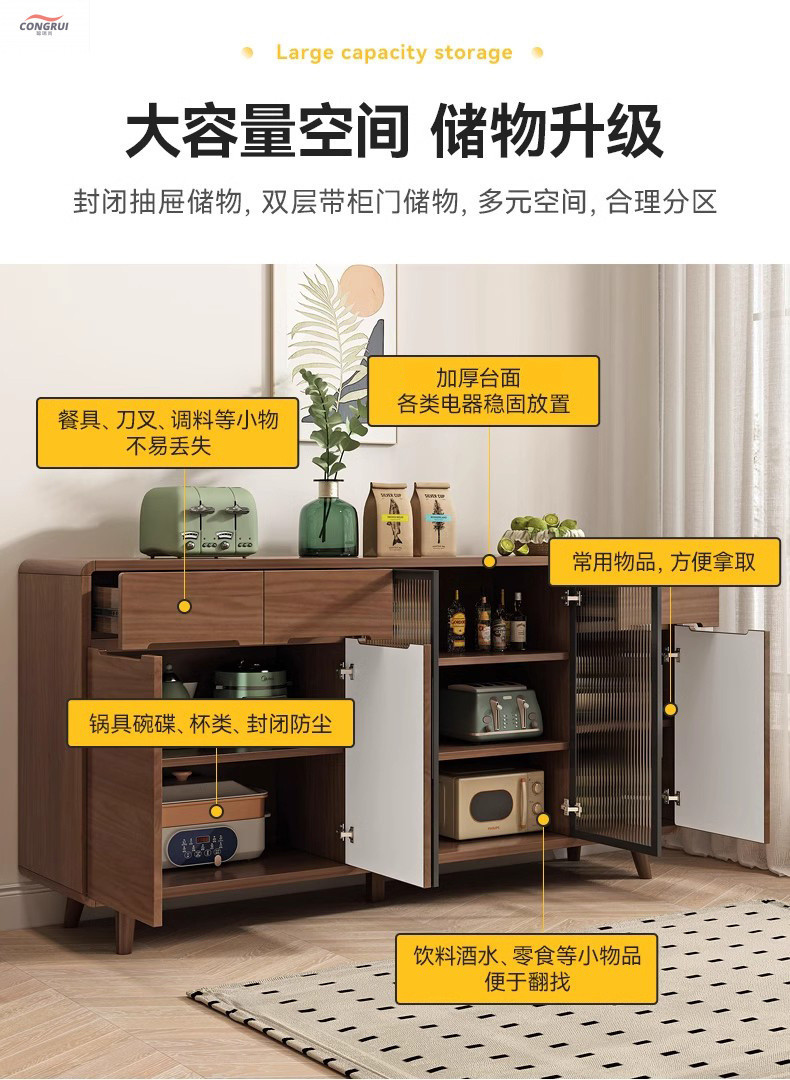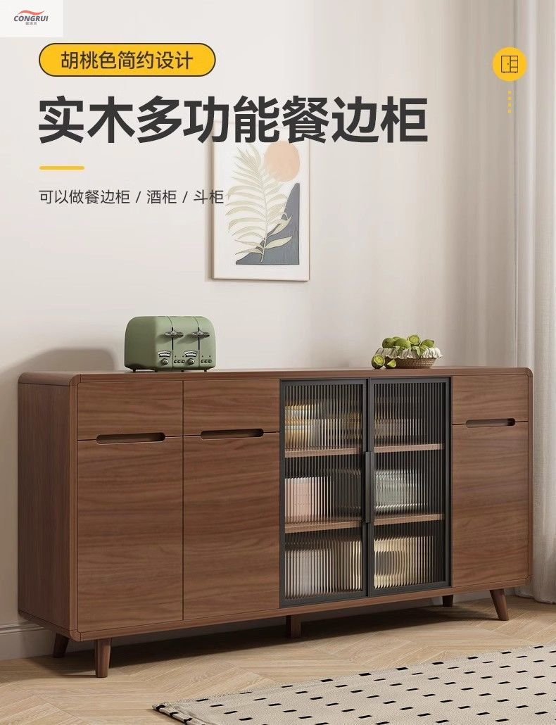 현대 노르딕 찬장 다기능 주방 수납 캐비닛 단단한 나무 찬장 통합 벽 거실 차 캐비닛