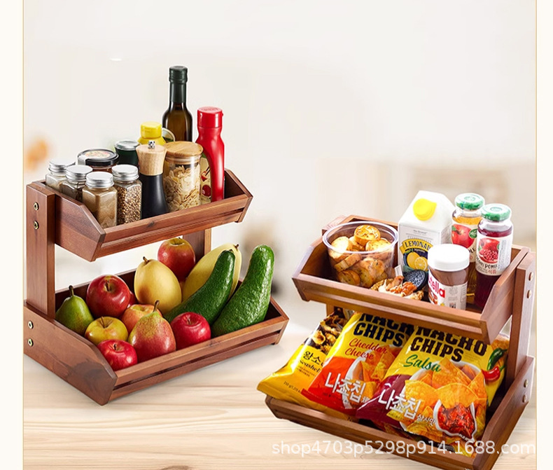 단단한 나무 수납 선반 주방 스낵 야채 및 과일 다층 수납 선반 장난감 및 잡화 정리 선반 다중 구획 및 다기능