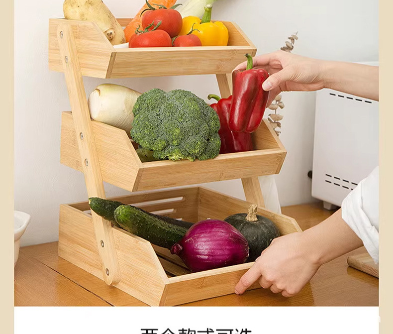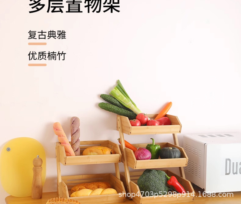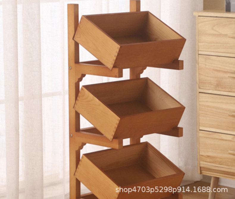 단단한 나무 수납 선반 주방 스낵 야채 및 과일 다층 수납 선반 장난감 및 잡화 정리 선반 다중 구획 및 다기능스토어 가기