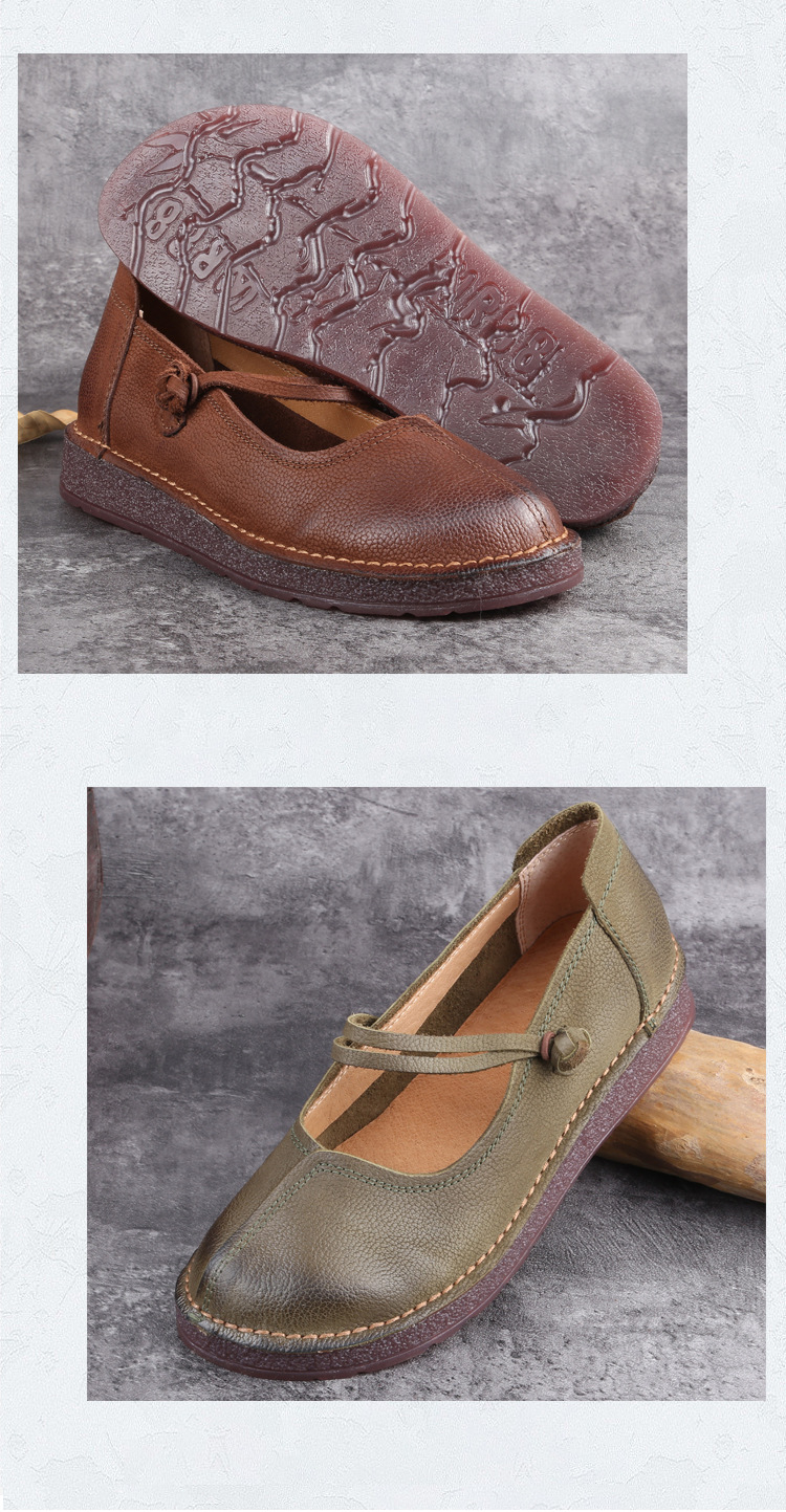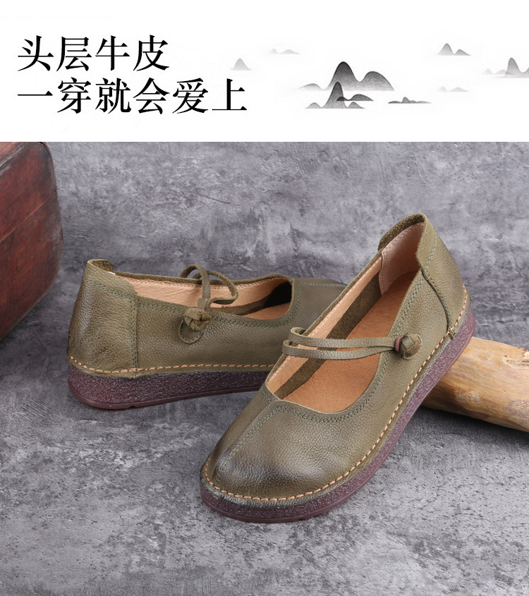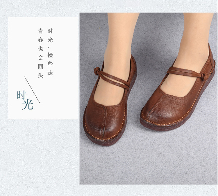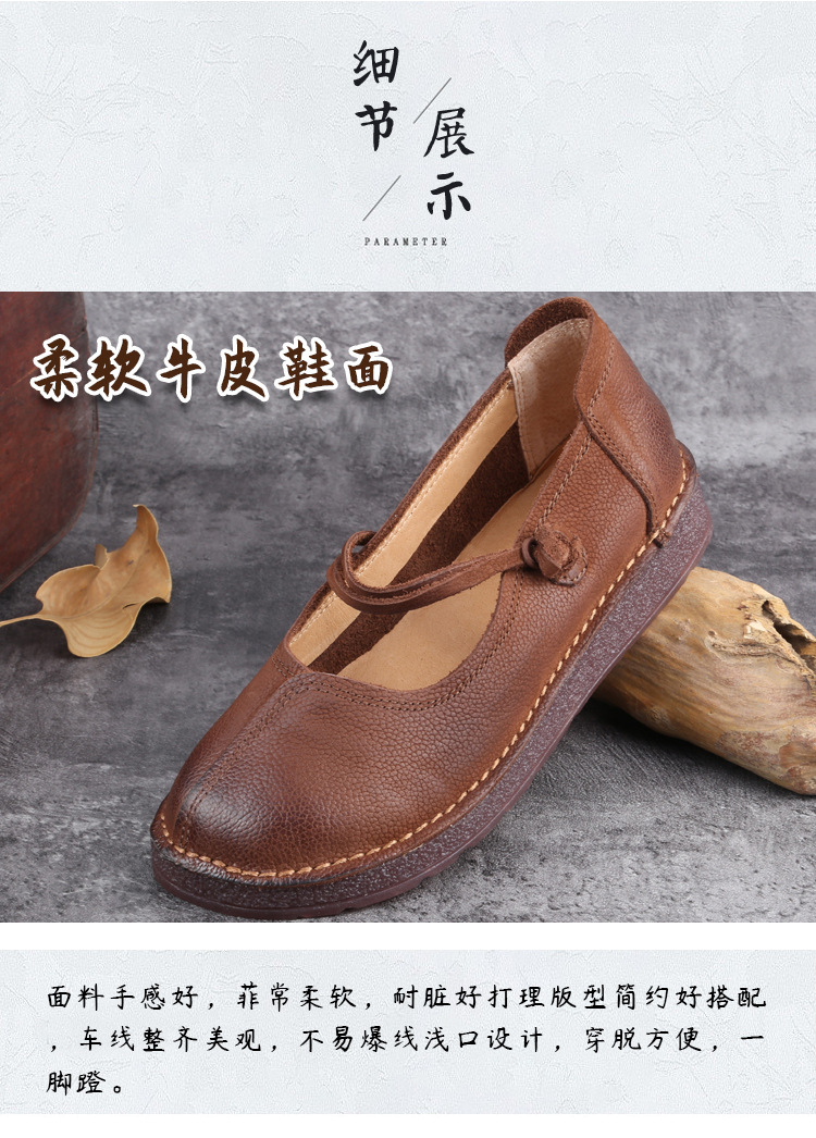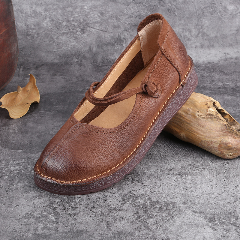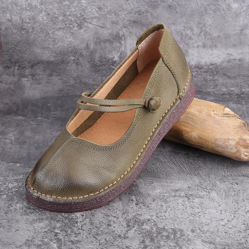 1층 소가죽 핸드메이드 레트로 가죽 여성화, 라운드 투, 에스닉 스타일 버클, 원라인 메리제인 펌프스스토어 가기