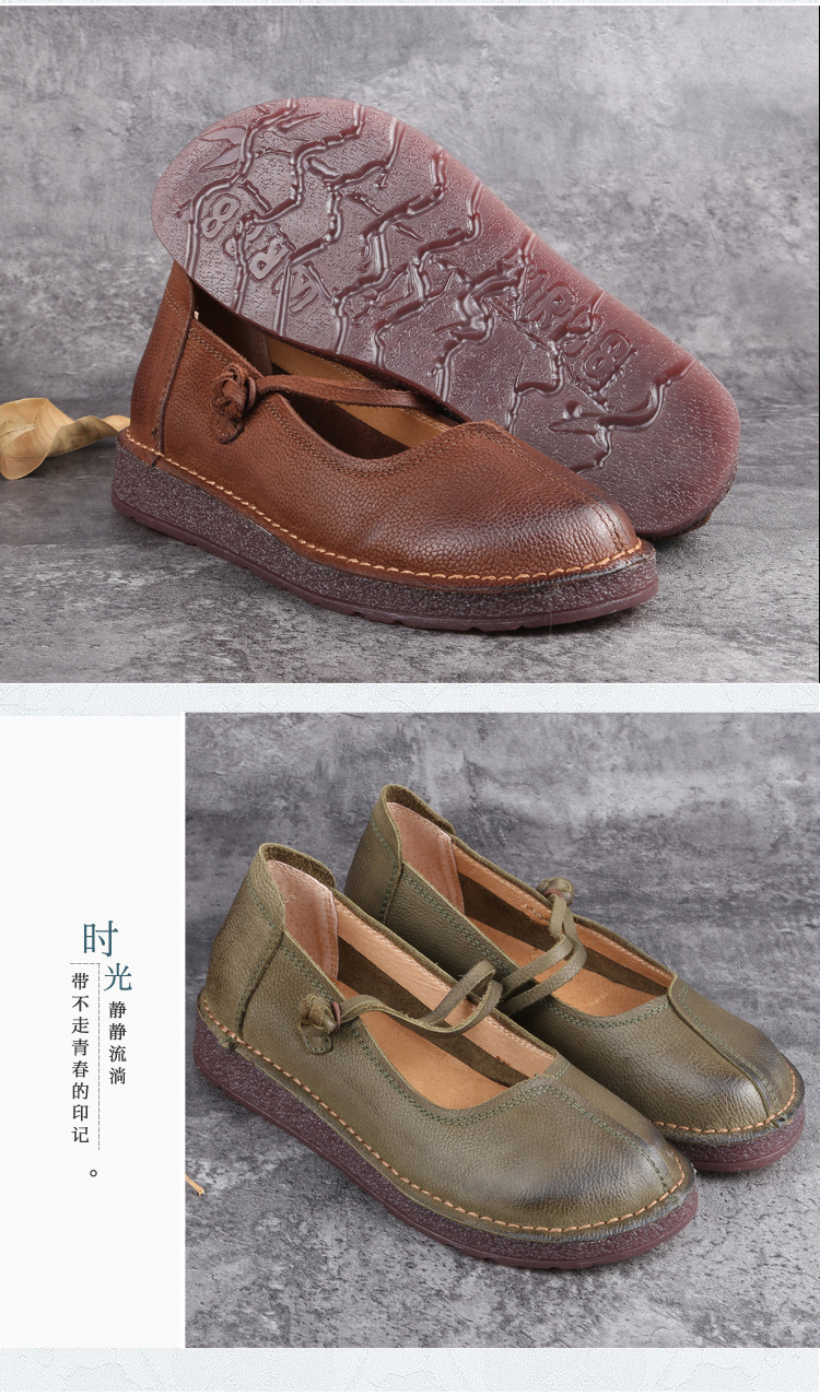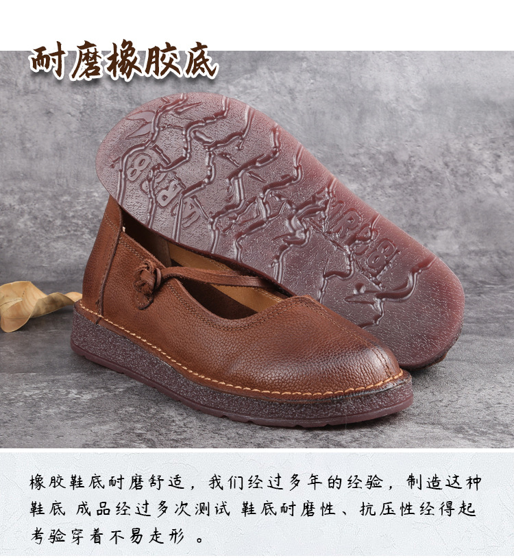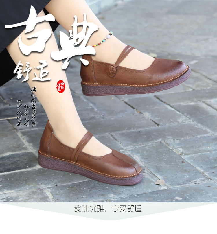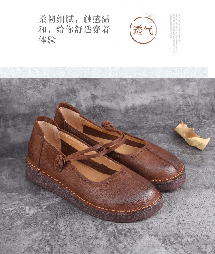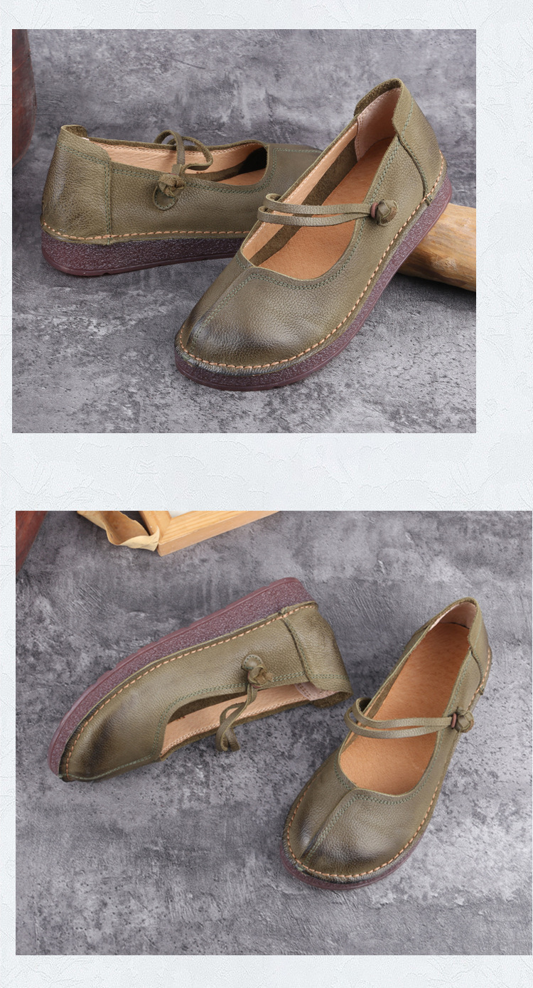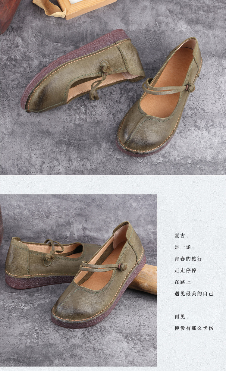 1층 소가죽 핸드메이드 레트로 가죽 여성화, 라운드 투, 에스닉 스타일 버클, 원라인 메리제인 펌프스스토어 가기