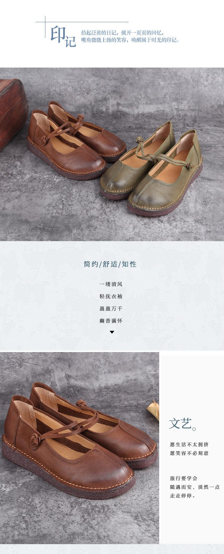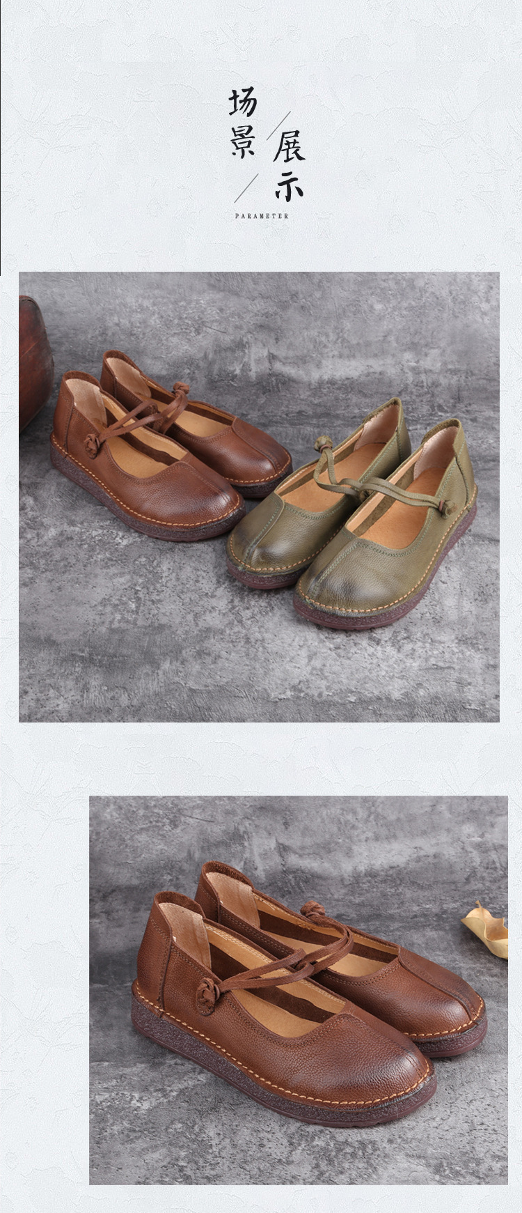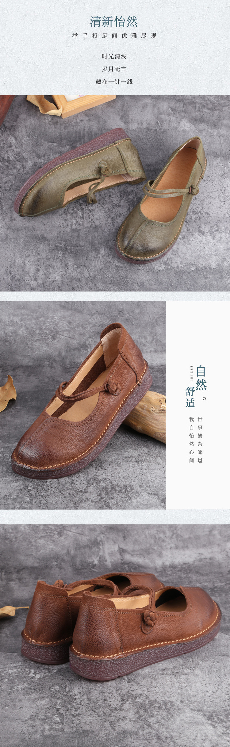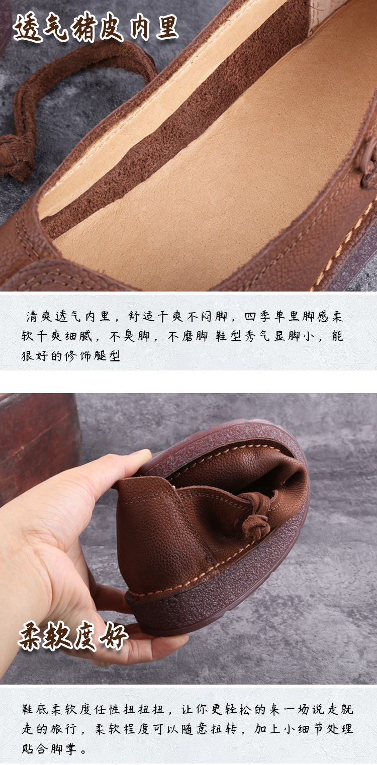 1층 소가죽 핸드메이드 레트로 가죽 여성화, 라운드 투, 에스닉 스타일 버클, 원라인 메리제인 펌프스스토어 가기