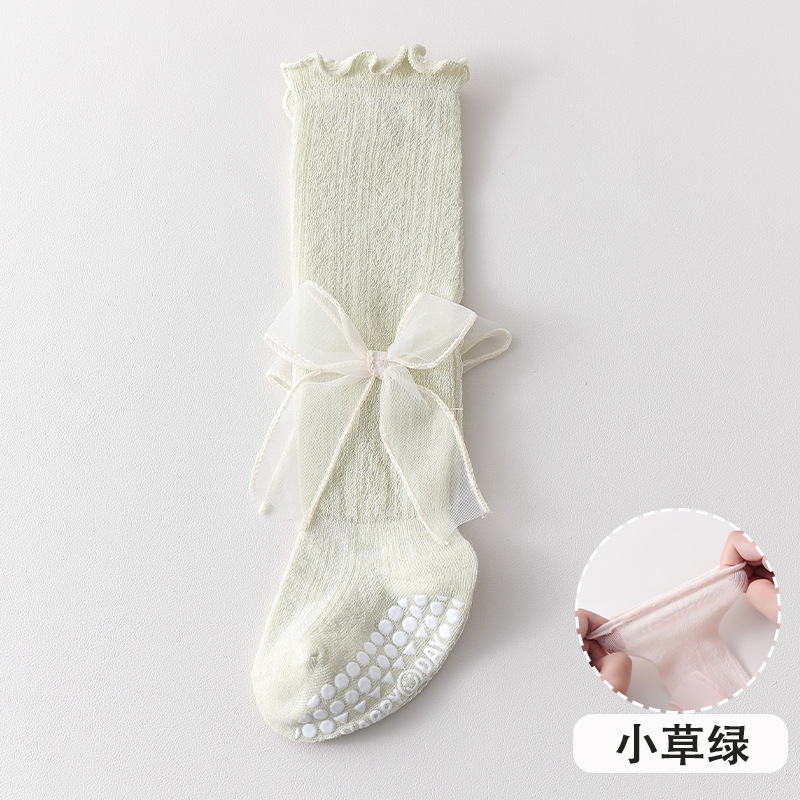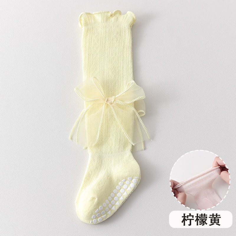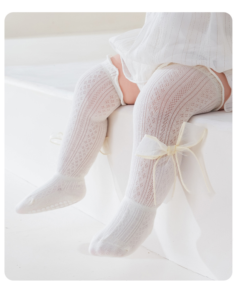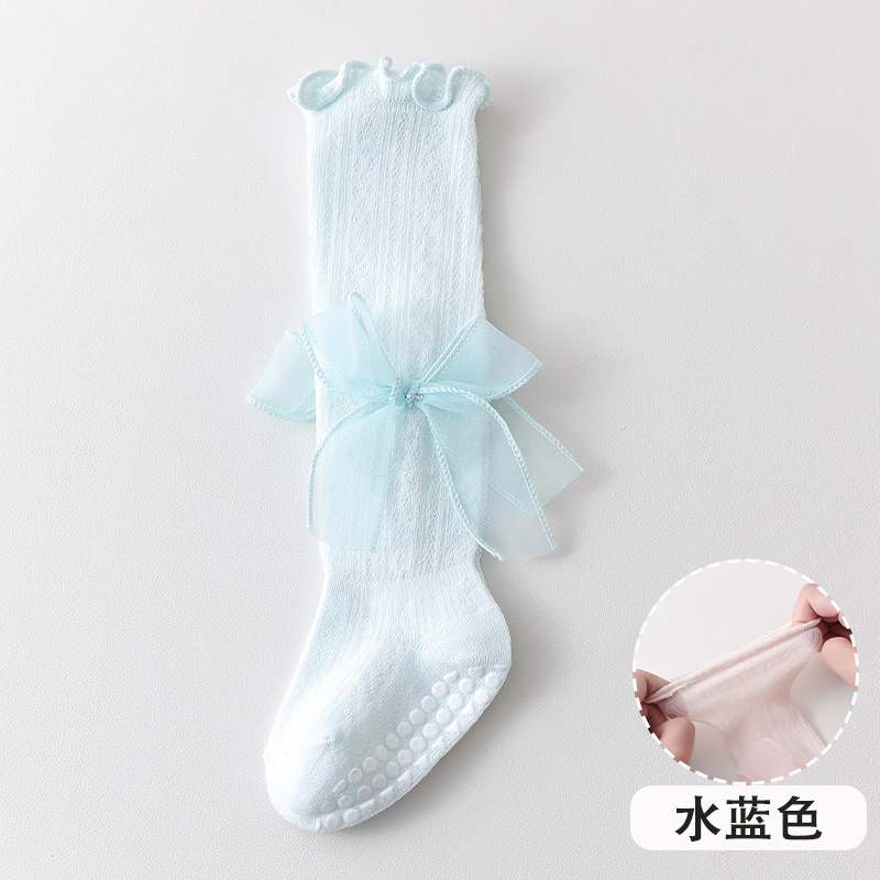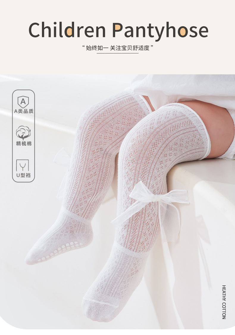 2025 여름 어린이 양말 843 메쉬 통기성 점선 귀여운 활 공주 스타킹스토어 가기