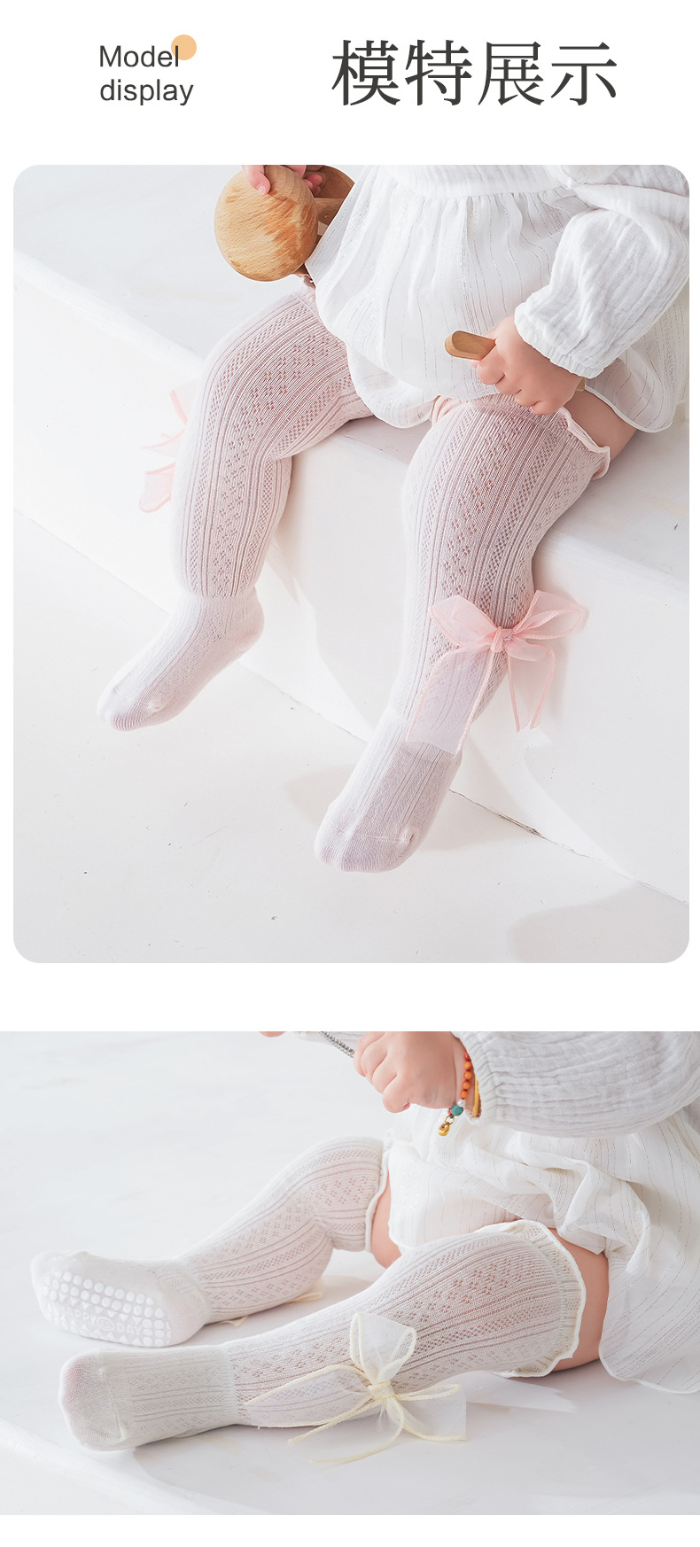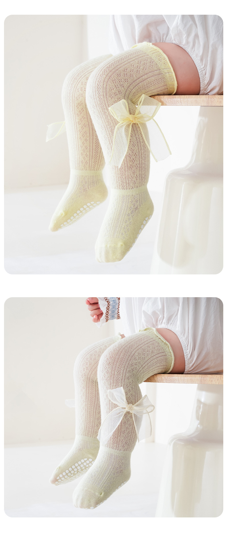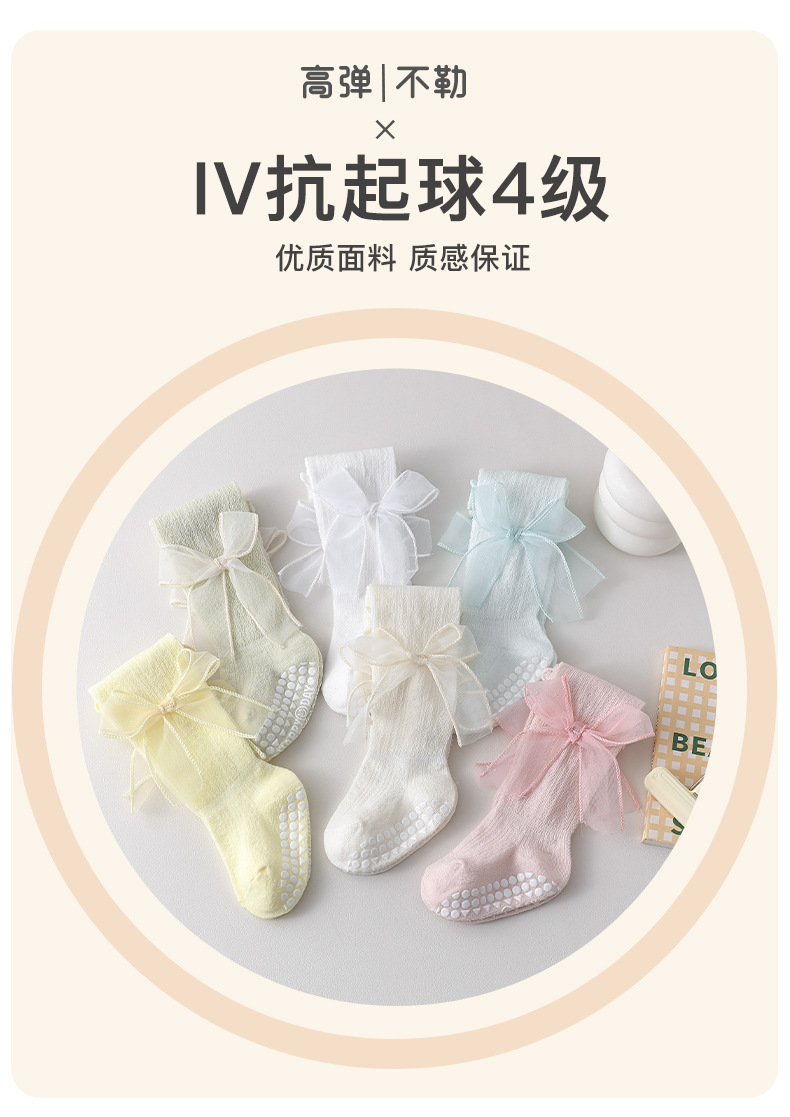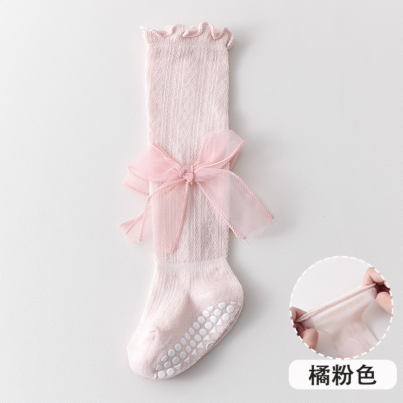 2025 여름 어린이 양말 843 메쉬 통기성 점선 귀여운 활 공주 스타킹스토어 가기