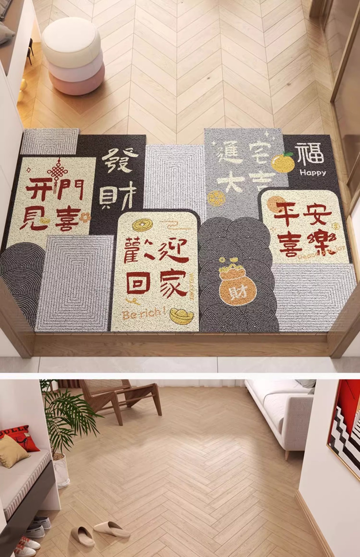 실크 링 플로어 매트 먼지 방지 및 사용하기 쉬운 접합 플로어 매트 입구 도어 풋 매트 가정용 미끄럼 방지 톈진 카펫스토어 가기