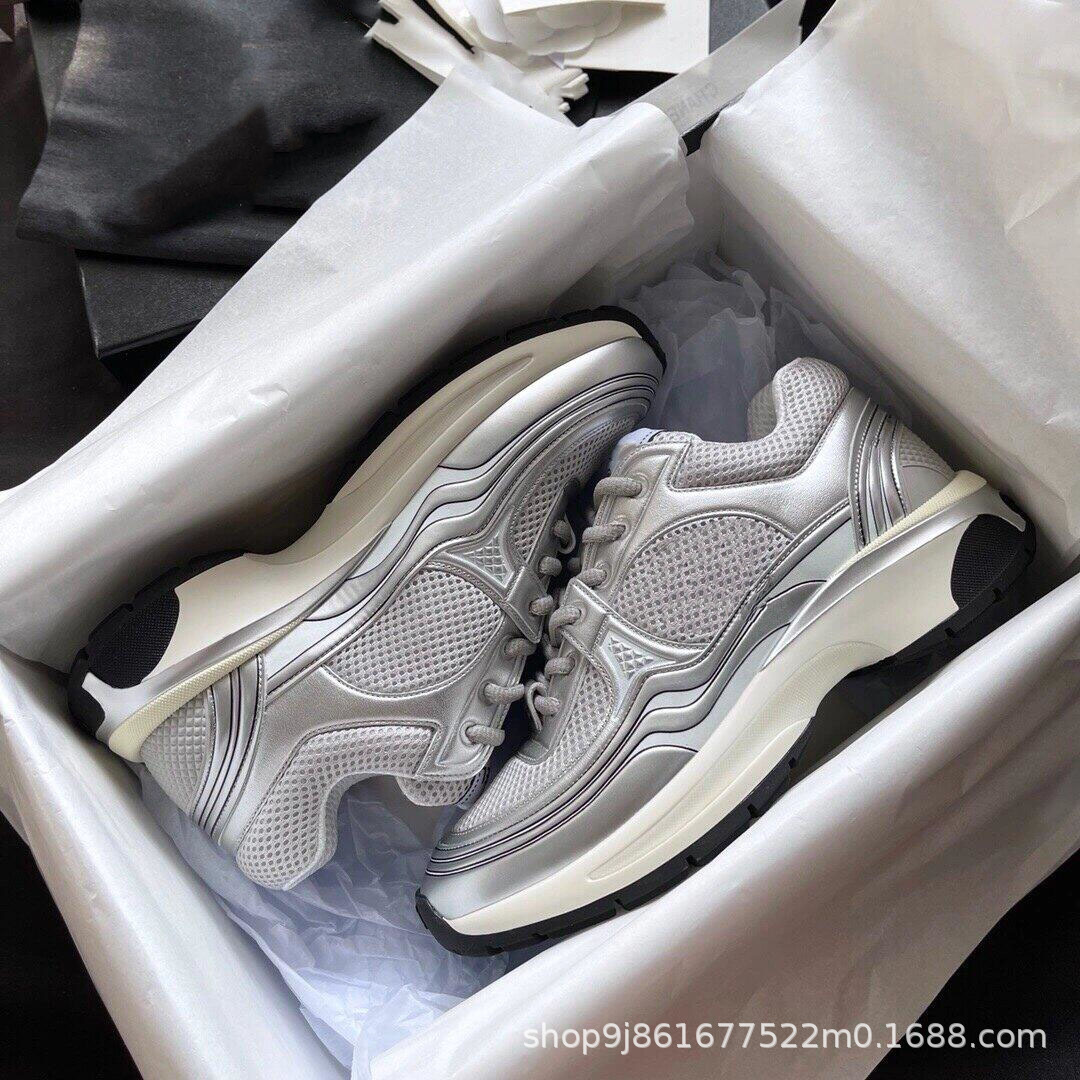 여성을위한 Xiaoxiangfeng 금색과 은색 두꺼운 밑창 운동화 2024 새로운 스타일 정품 가죽 라운드 발가락 레이스 통기성 캐주얼 다목적 운동화스토어 가기