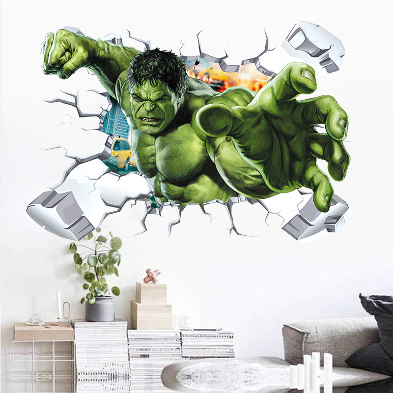 마블 3D 어벤져 스 벽 스티커 벽 헐크 거실 침실 배경 장식 국경 벽 스티커 자체 접착스토어 가기