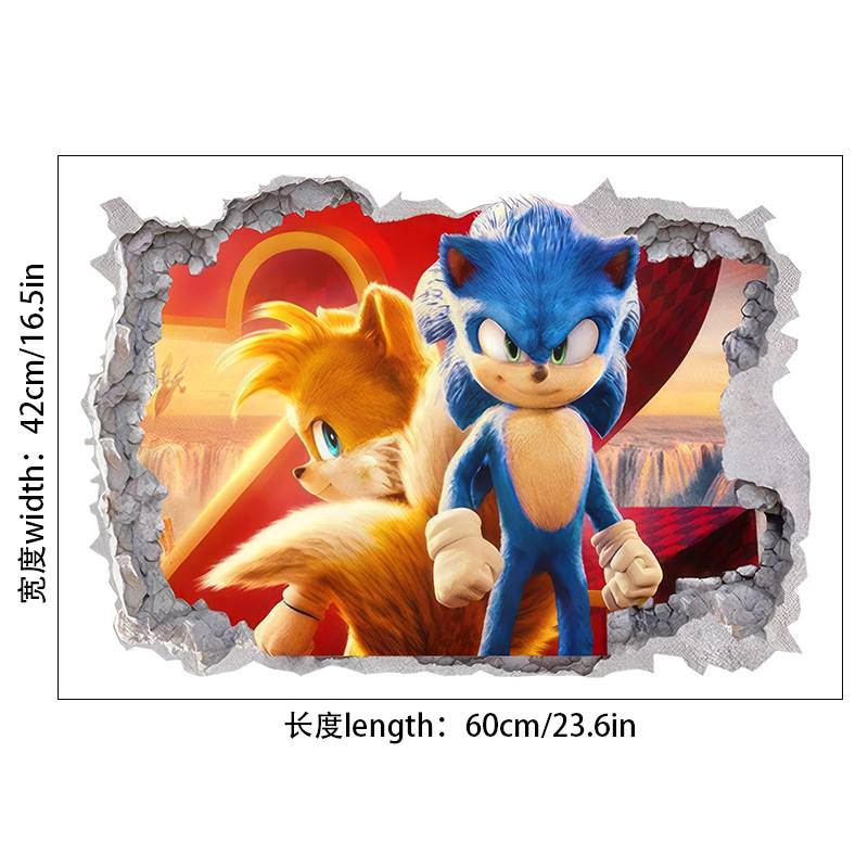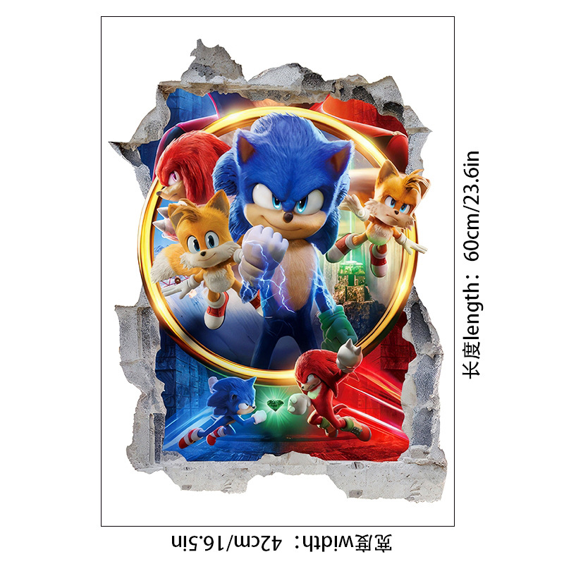유럽과 미국의 새로운 소닉 벽 스티커 어린이 방 낙서 장식 3D 깨진 벽 만화 게임 스티커 이동식 PVC스토어 가기