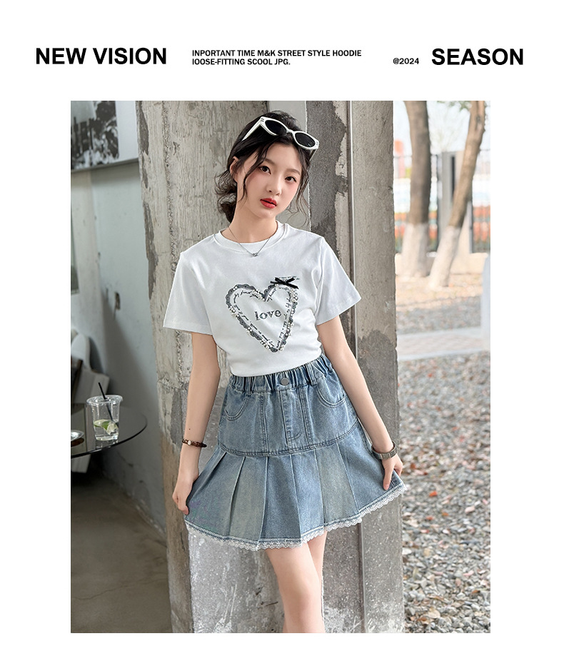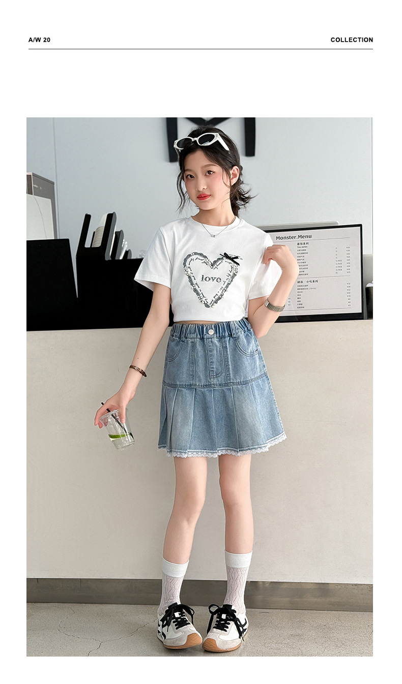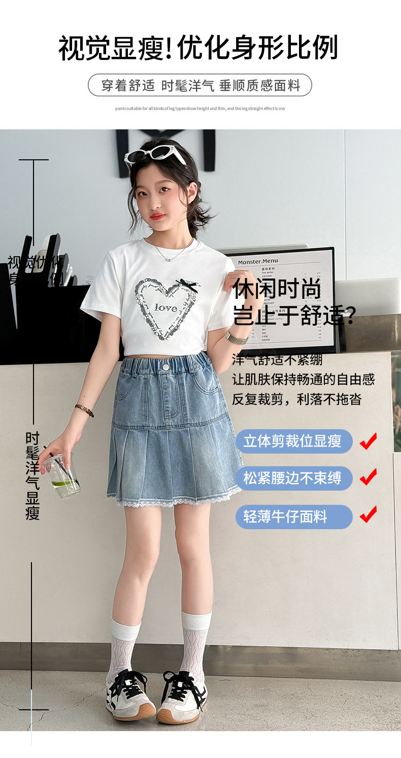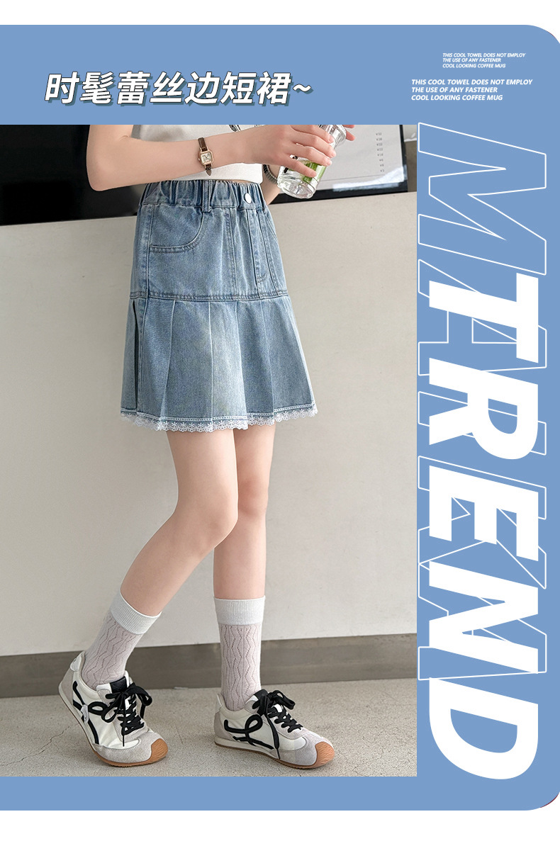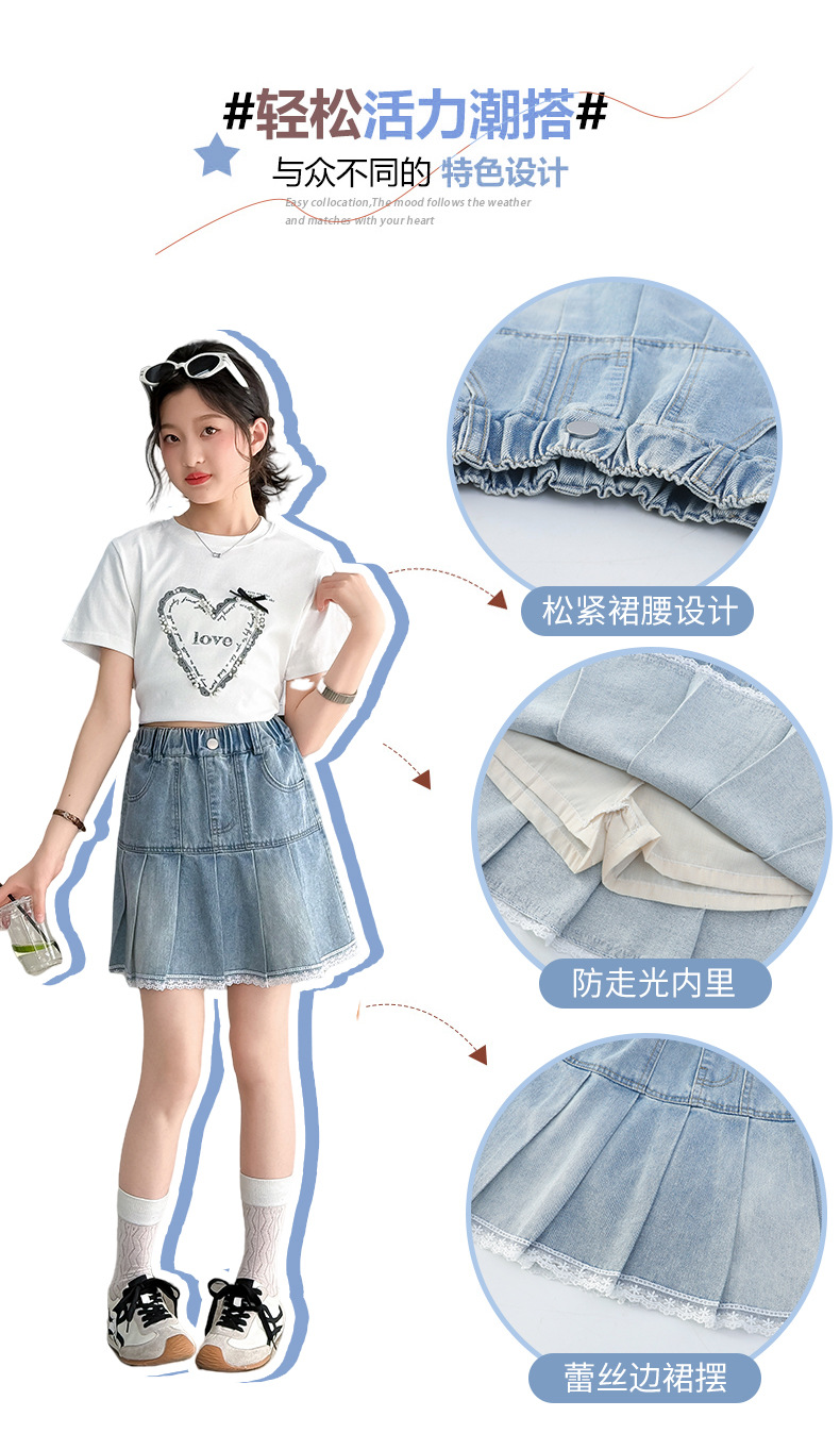 여름 아우터용 여아 짧은 치마 얇은 2025 새로운 스타일 중대형 아동 캐주얼 어린 소녀 스타일 데님 스커트 크로스보더