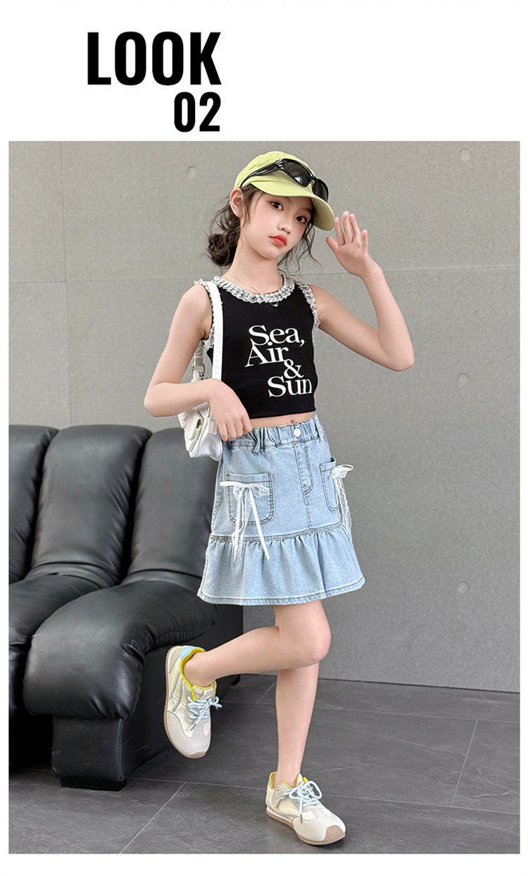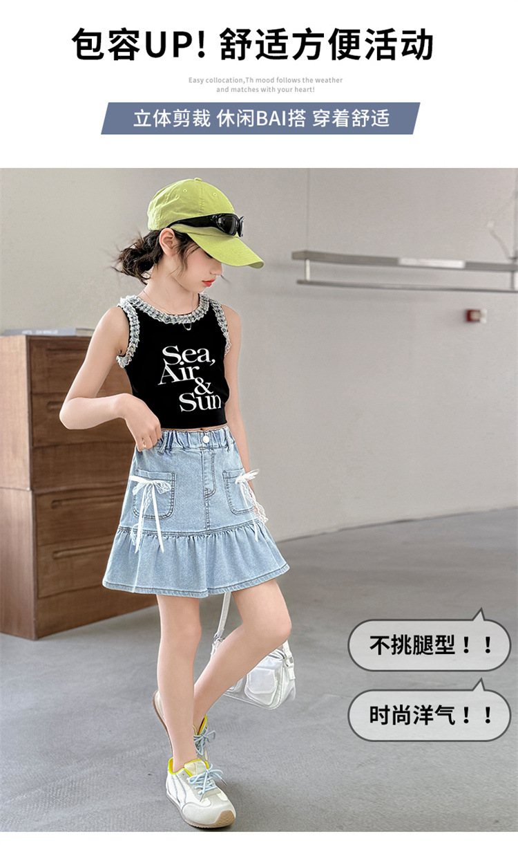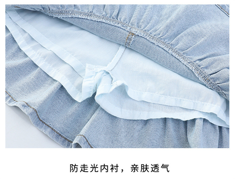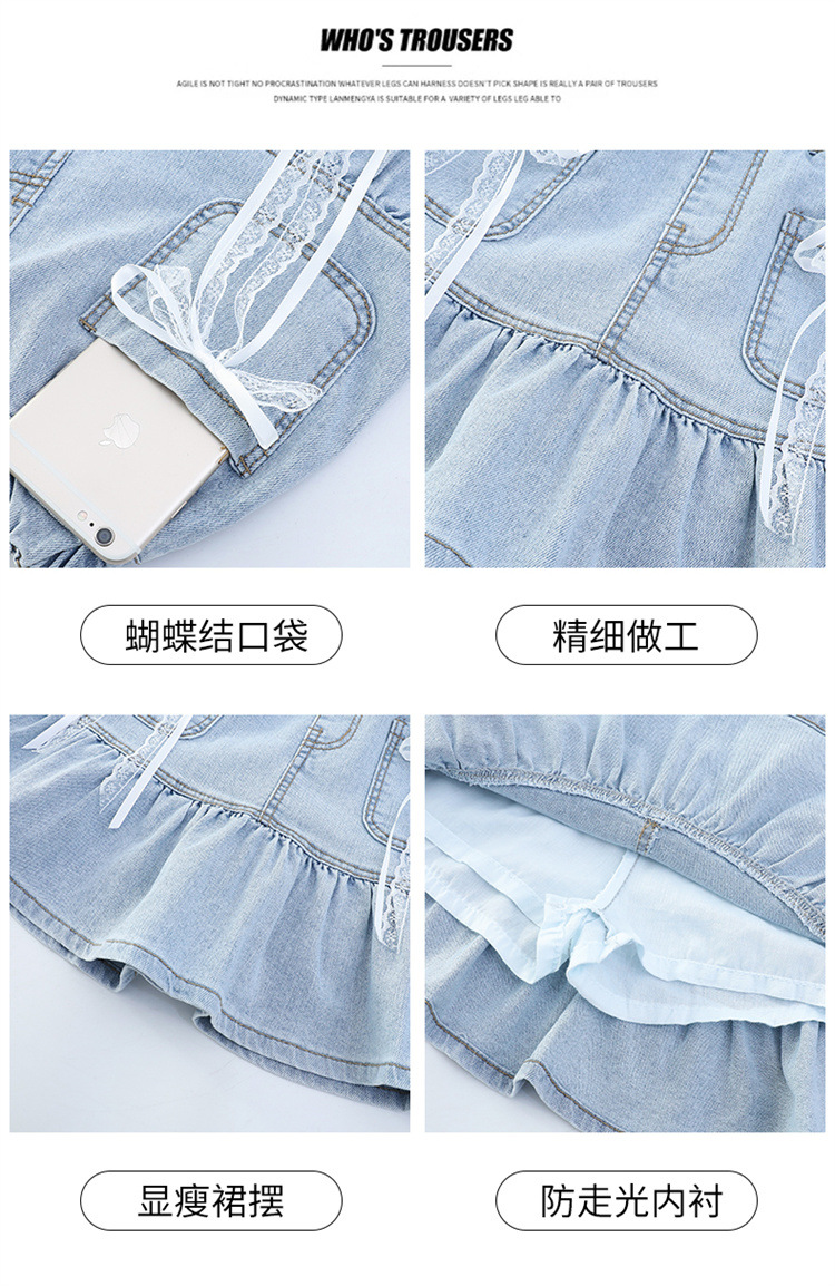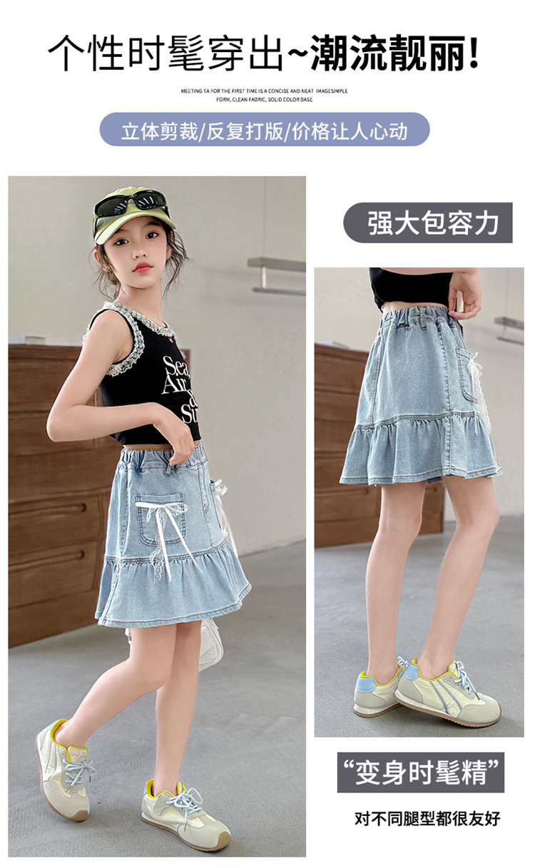 여아 데님 스커트 여름 얇은 2025 새로운 스타일 중대형 어린이 유행 나비 매듭 노출 방지 짧은 스커트 유행