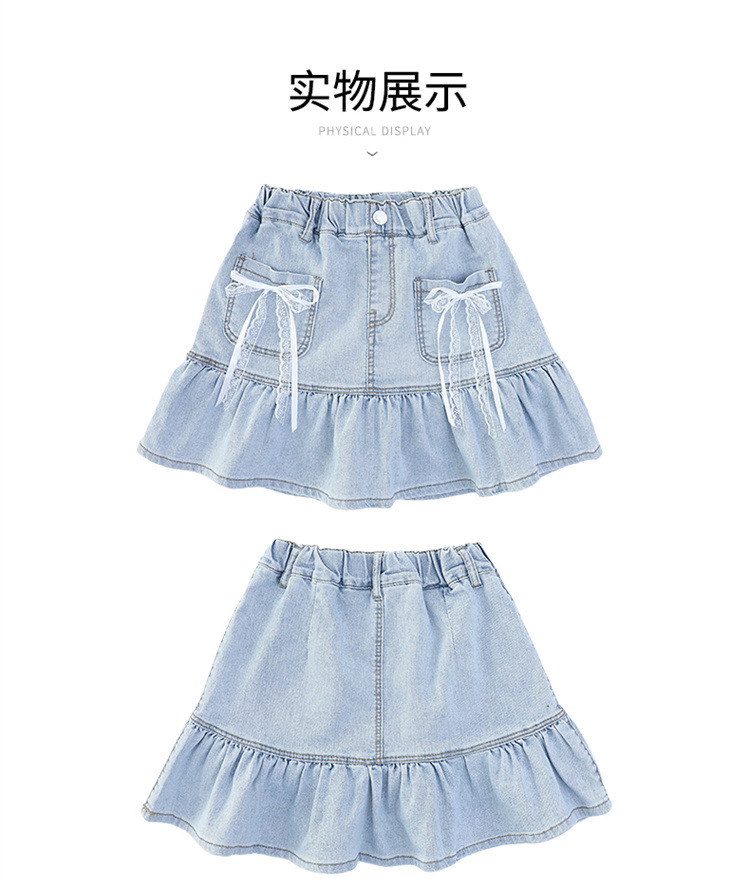 여아 데님 스커트 여름 얇은 2025 새로운 스타일 중대형 어린이 유행 나비 매듭 노출 방지 짧은 스커트 유행스토어 가기
