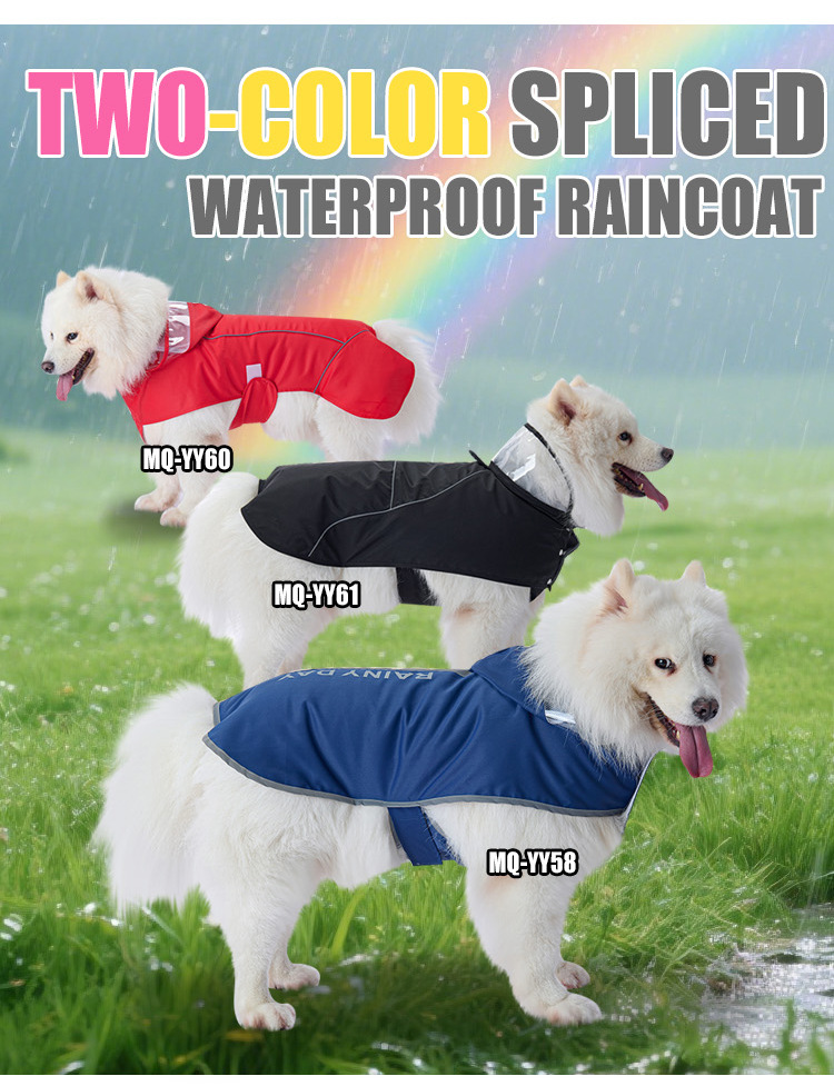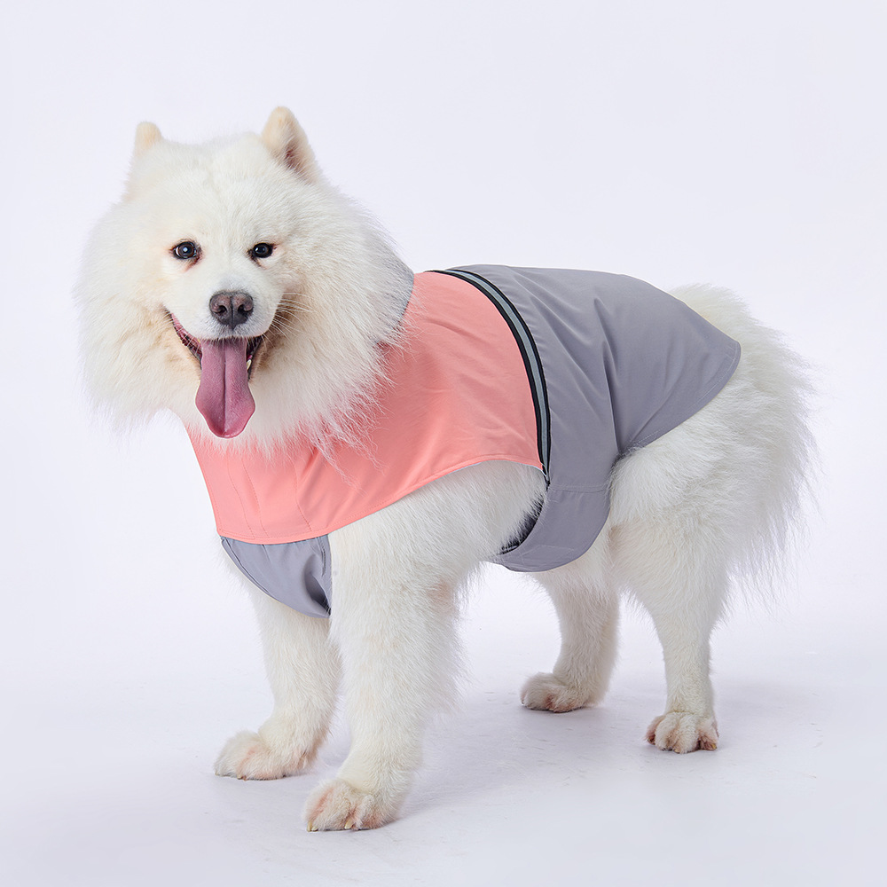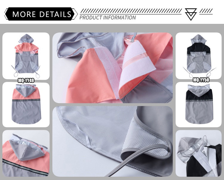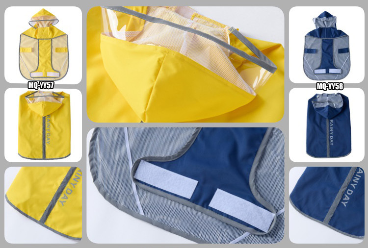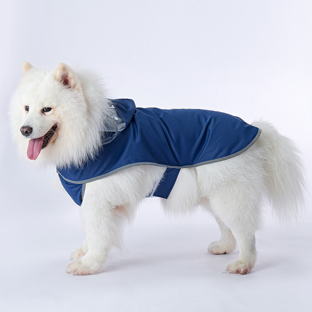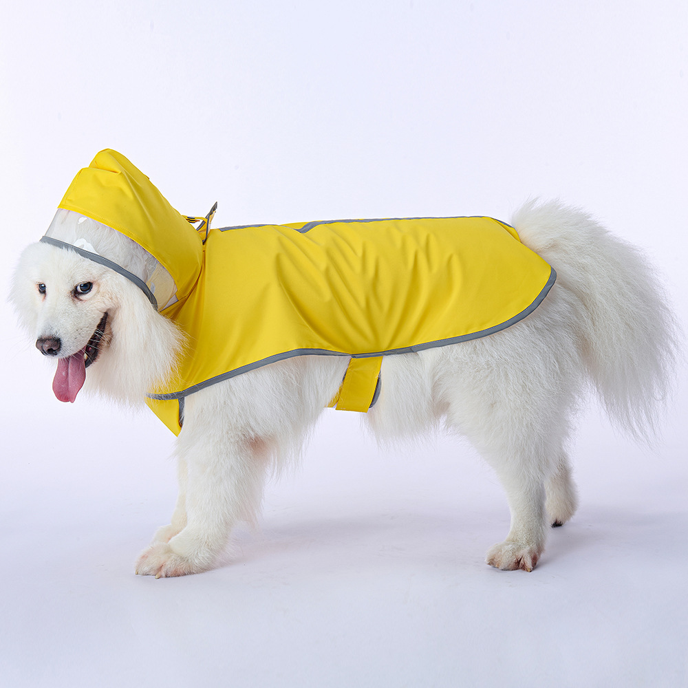 반사 스트립이있는 국경 후드 대형 개 애완 동물 비옷 경량 벨크로 방풍 및 방수 개 비옷