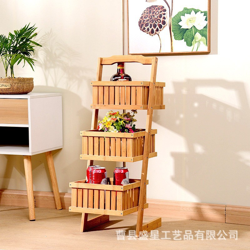 단단한 나무 주방 야채 및 과일 보관 랙 바닥에서 천장까지 3 층 보관 랙 발코니 홈 잡지 및 신문 보관 랙