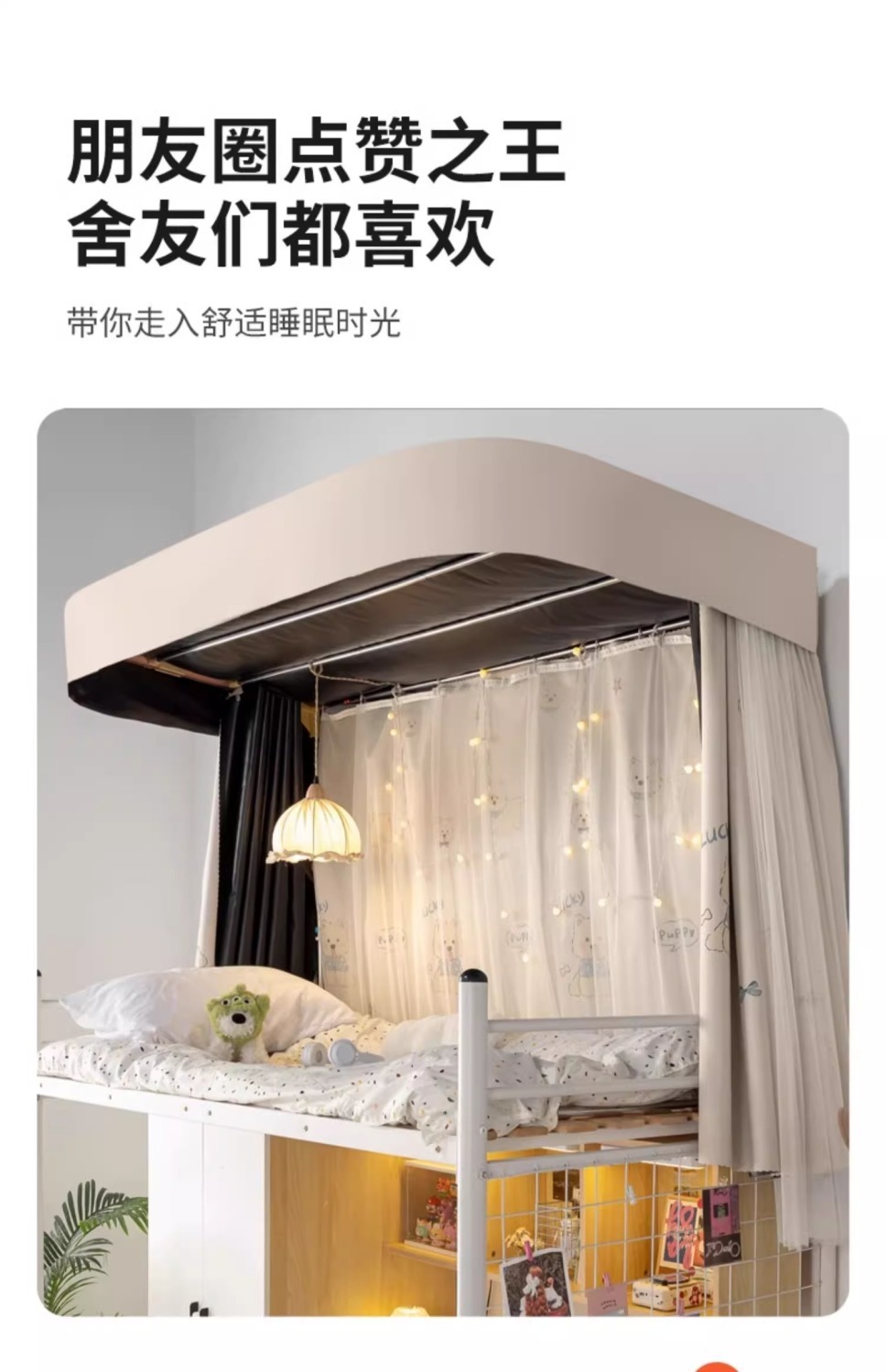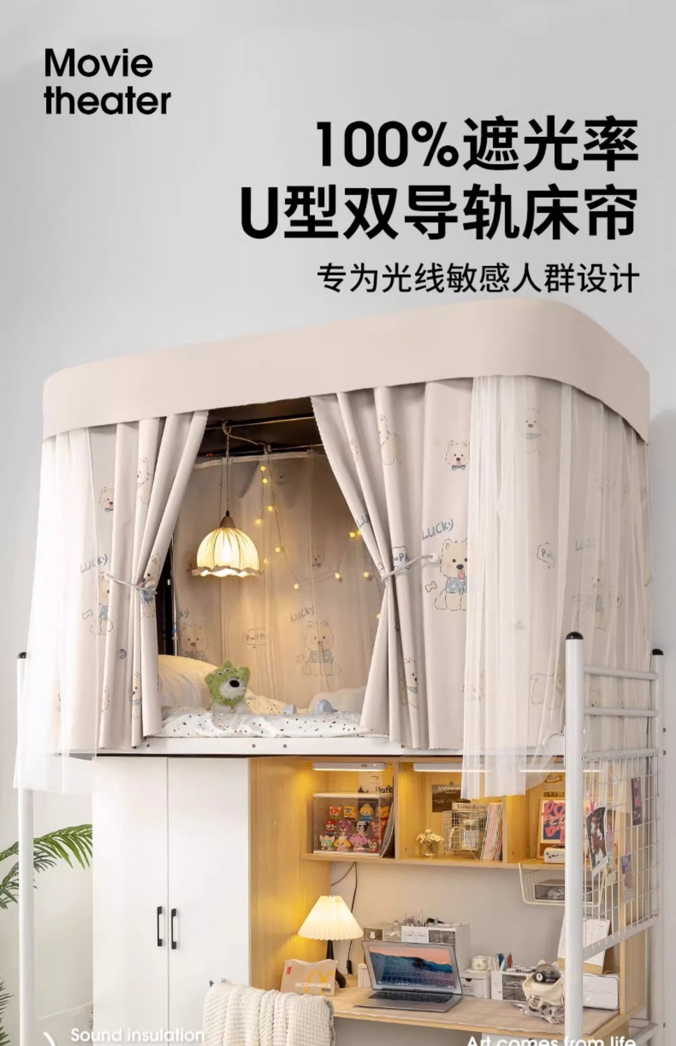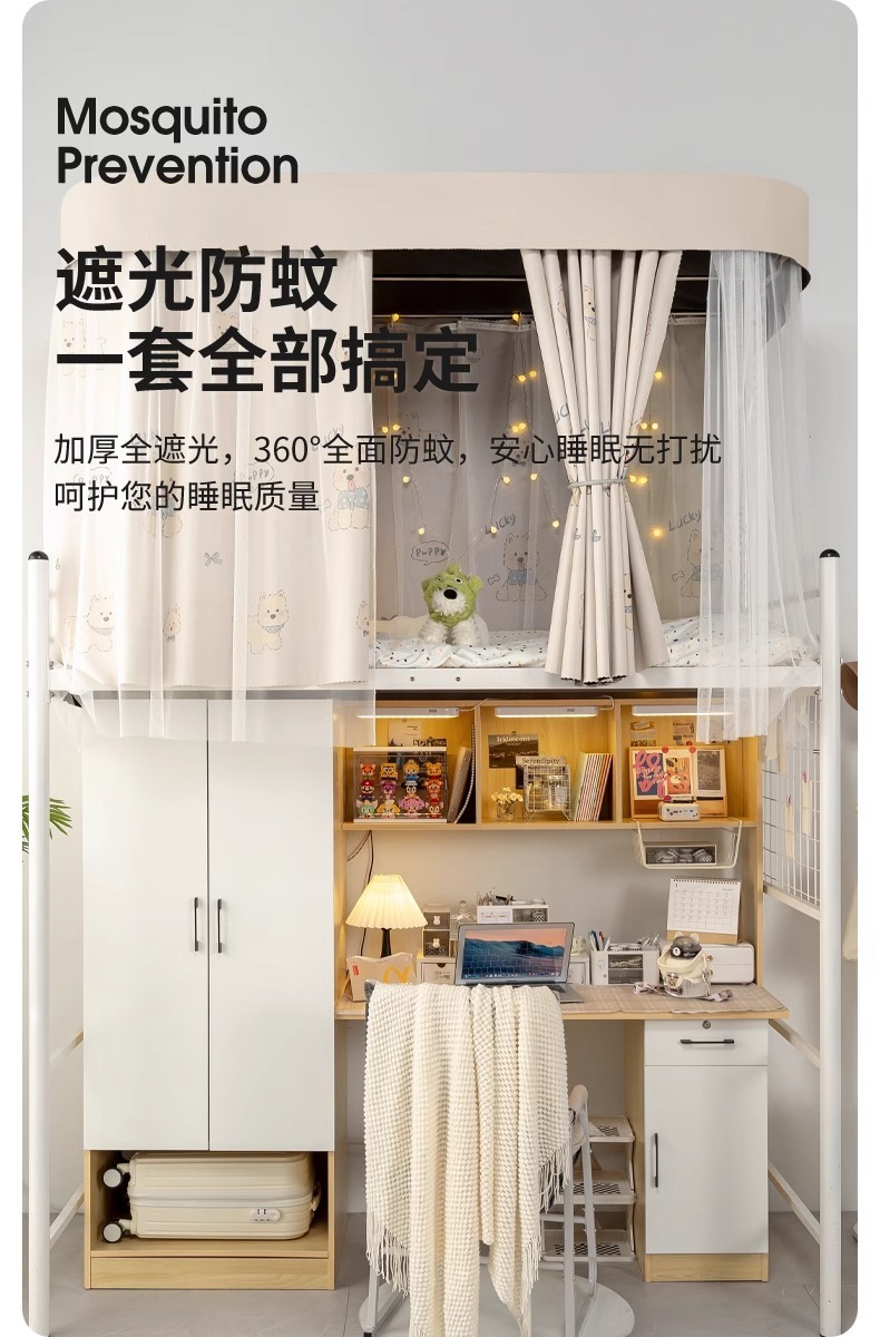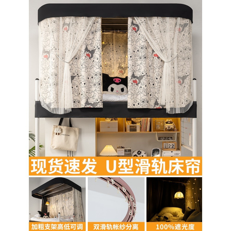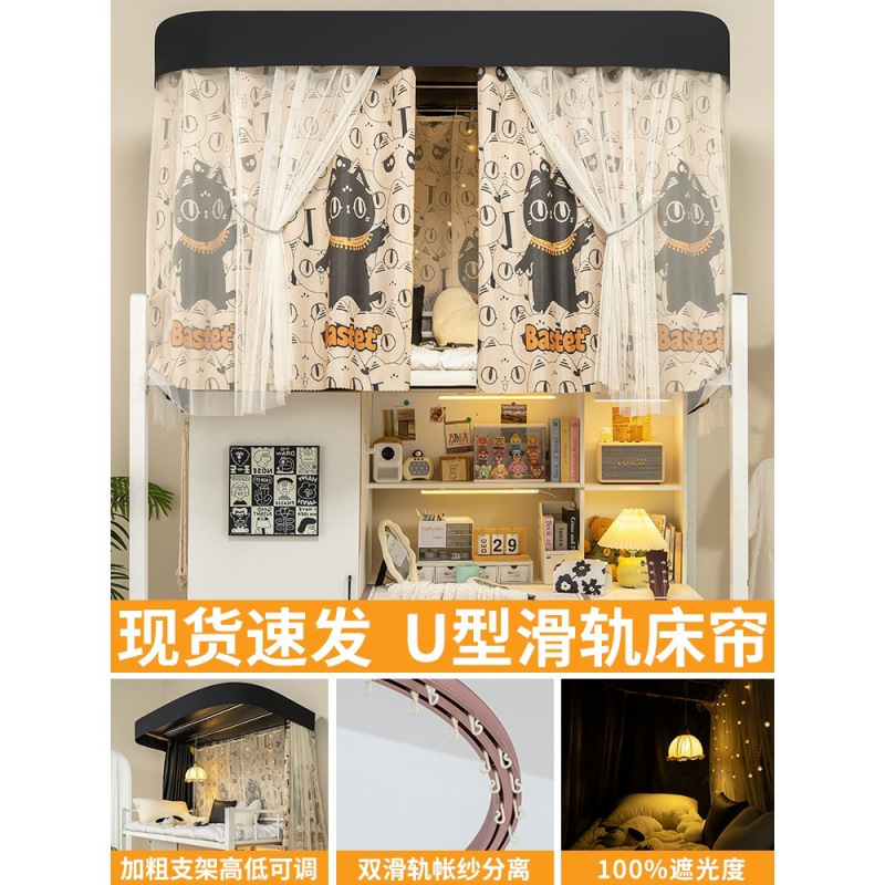 상단 침대용 특수 U자형 이중 슬라이드 레일 완전 차광 침대 커튼, 대학 기숙사 기숙사 일체형 모기장, 두꺼운 U자형 커튼스토어 가기