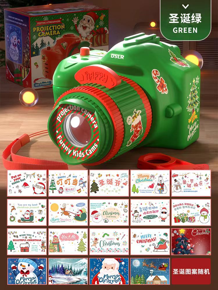 • 카메라 크리스마스 그린 - 카드 3장 사진 3장 - 음향 효과 [영어 컬러 박스] 배터리 포함