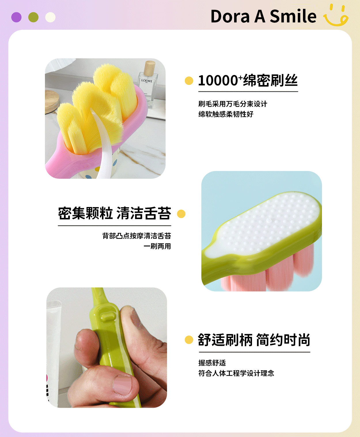 도파민 성인용 부드러운 칫솔, 수천 개의 강모, 가치 조합 팩, 매우 부드러운 부모-자식 칫솔 청소, 가정용 도매