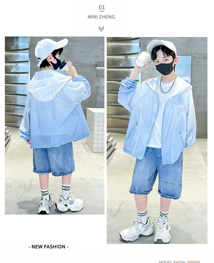 소년 자외선 차단 의류 여름 2025 새로운 어린이 자외선 차단 의류 중대형 어린이 여름 에어컨 셔츠 소년 코트 얇은스토어 가기