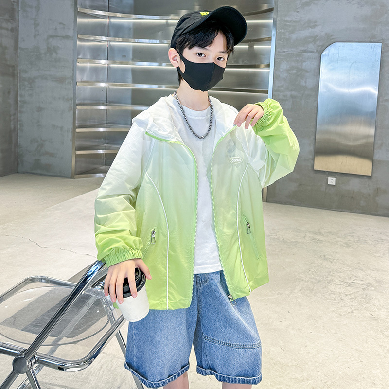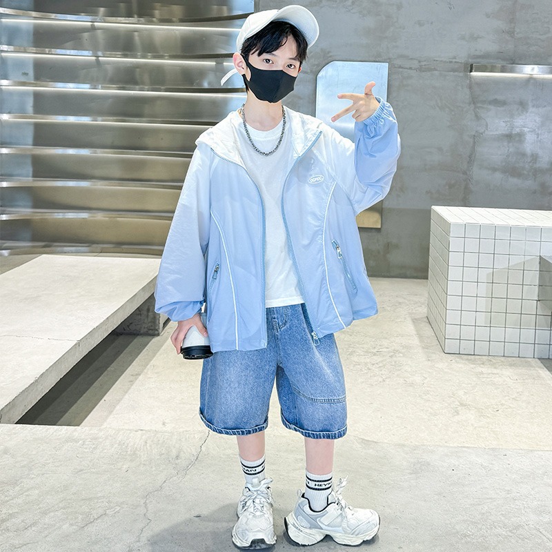 소년 자외선 차단 의류 여름 2025 새로운 어린이 자외선 차단 의류 중대형 어린이 여름 에어컨 셔츠 소년 코트 얇은