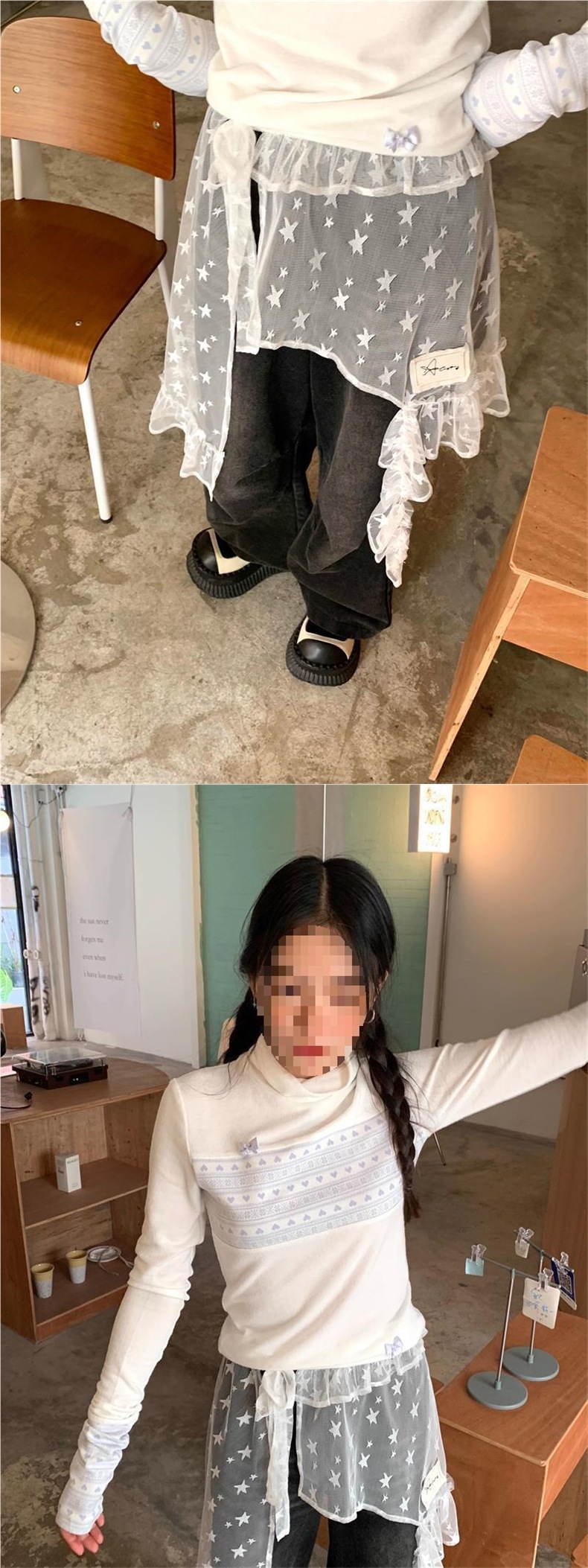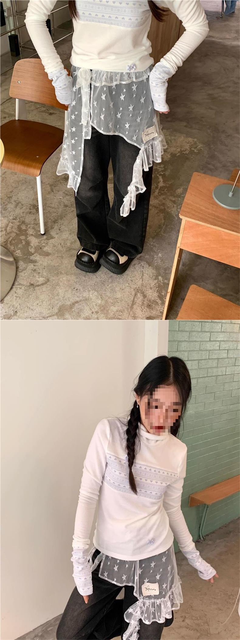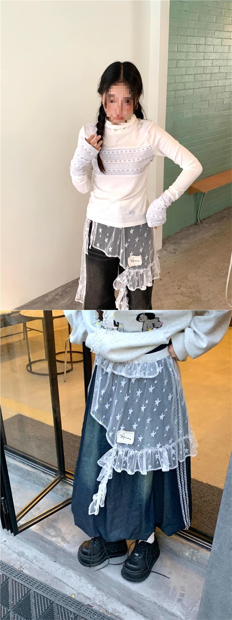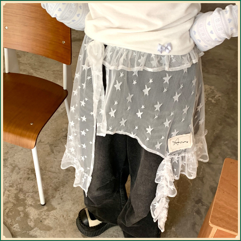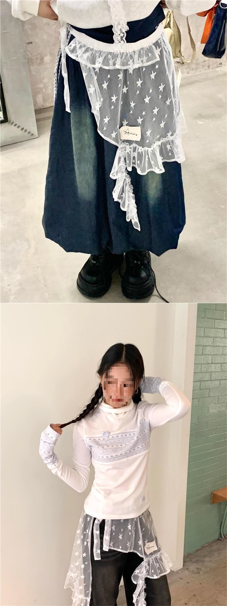 무료 배송 한국 앞치마, 복고풍 레이스 레이어링, 믹스 앤 매치 틈새 분위기 메쉬 스커트스토어 가기